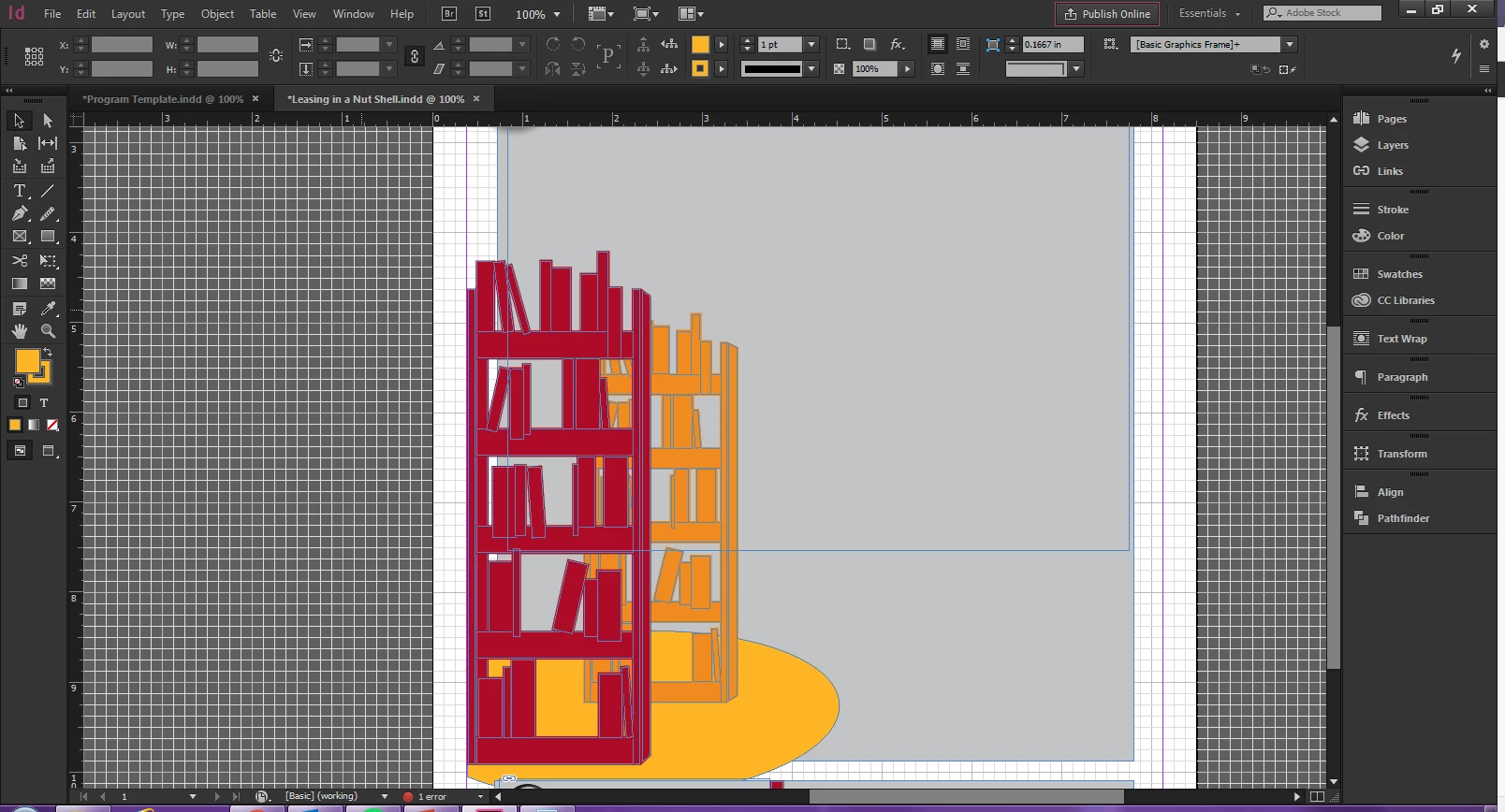 I created these two bookshelves using the rectangle tool in InDesign, I like how they turned out, but there is one problem. They have no clipping path options. I need InDesign to set/ activate/ recognize... whatever... a clipping path for this whole shape so that I can set a text wrap around it, and create a cast shadow for it, but I don't know how to get it to show up.