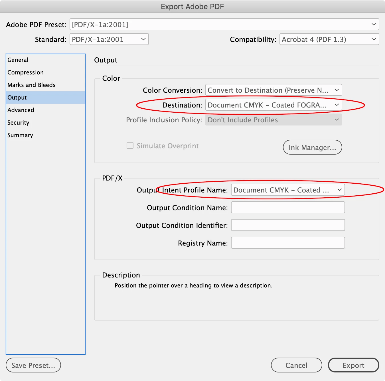 Normally i use PDF/X-1a:2001. But i also tried with PDF/x-4:2010