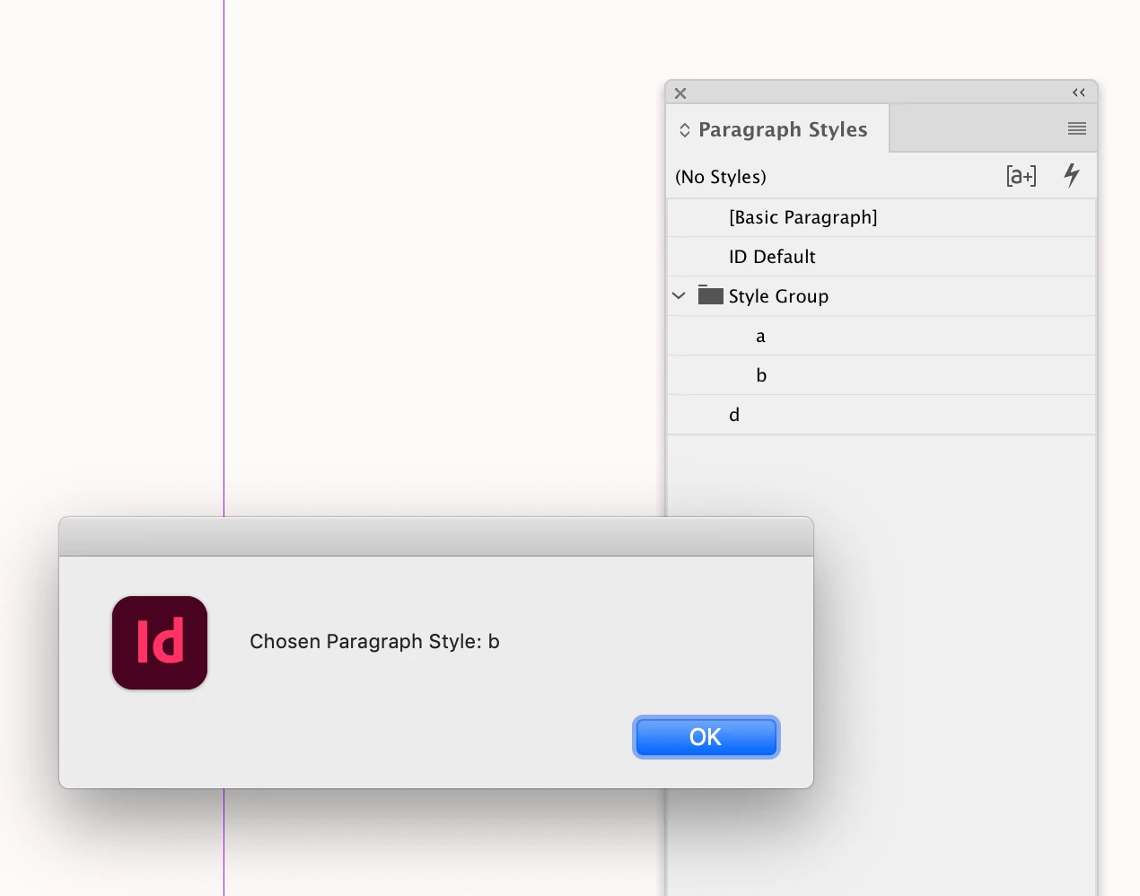 alert("\rChosen Paragraph Style: " + psSel.name);