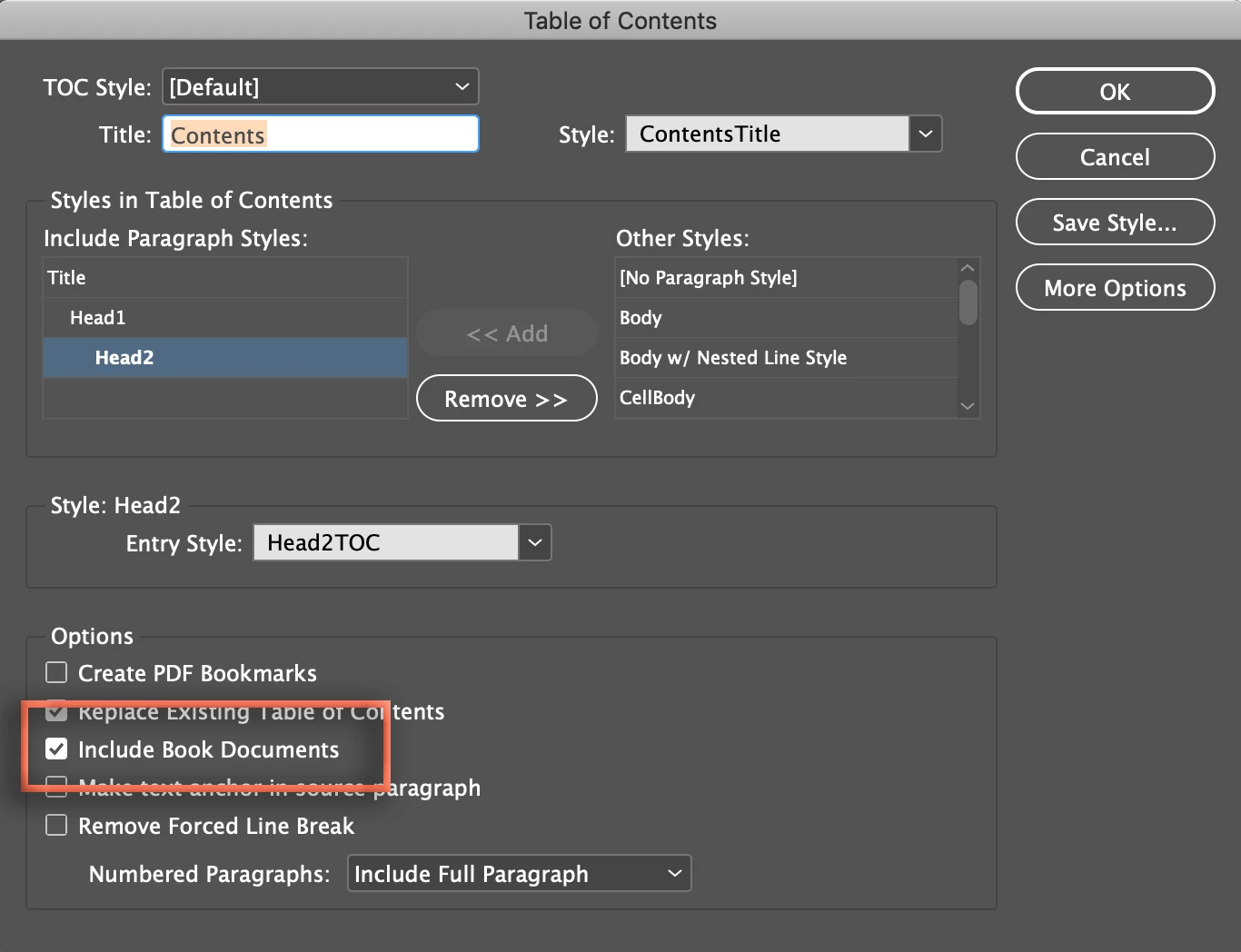 I have 3 InDesign documents that are published as one pdf. I would like one table of contents to start on the 3rd page of the 1st of the 3 documents. Is this possible to automate? or, What is the best way to do this?