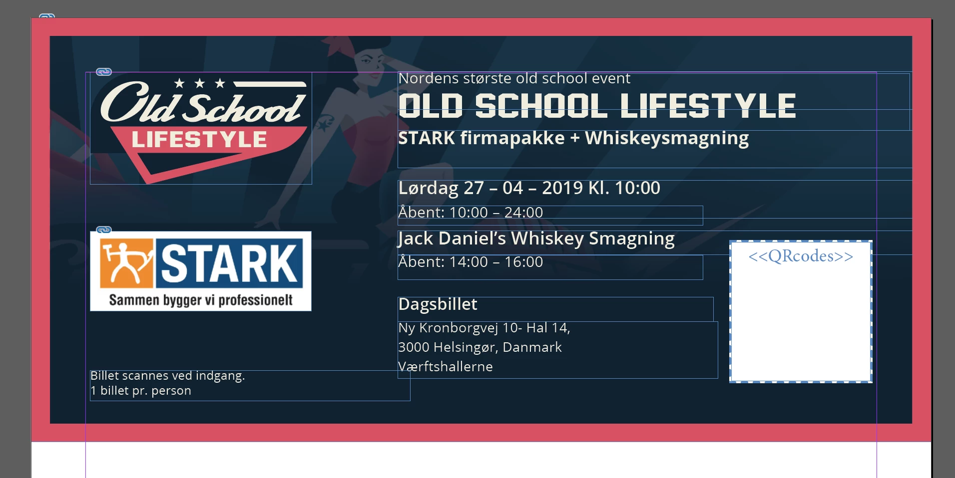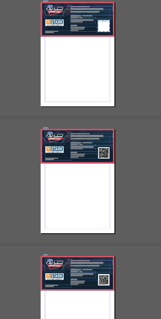 I've setup the first page with one ticket template on one A4 page. I need 3 tickets per page with DIFFERENT QR codes.