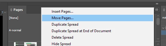 2) go back to your document and open Pages panel, then hamburger menu, then select MOVE PAGES: