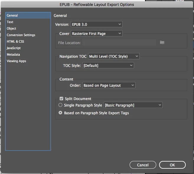 I am trying to export a reflowable epub from InDesign (CC2019).