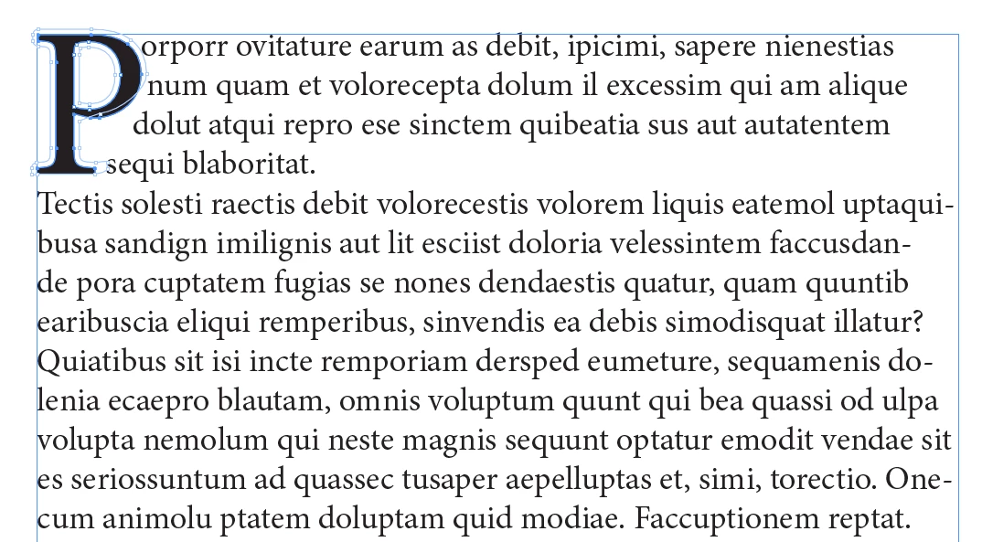 - Select the drop cap and go to Object > Anchored Object > Release.