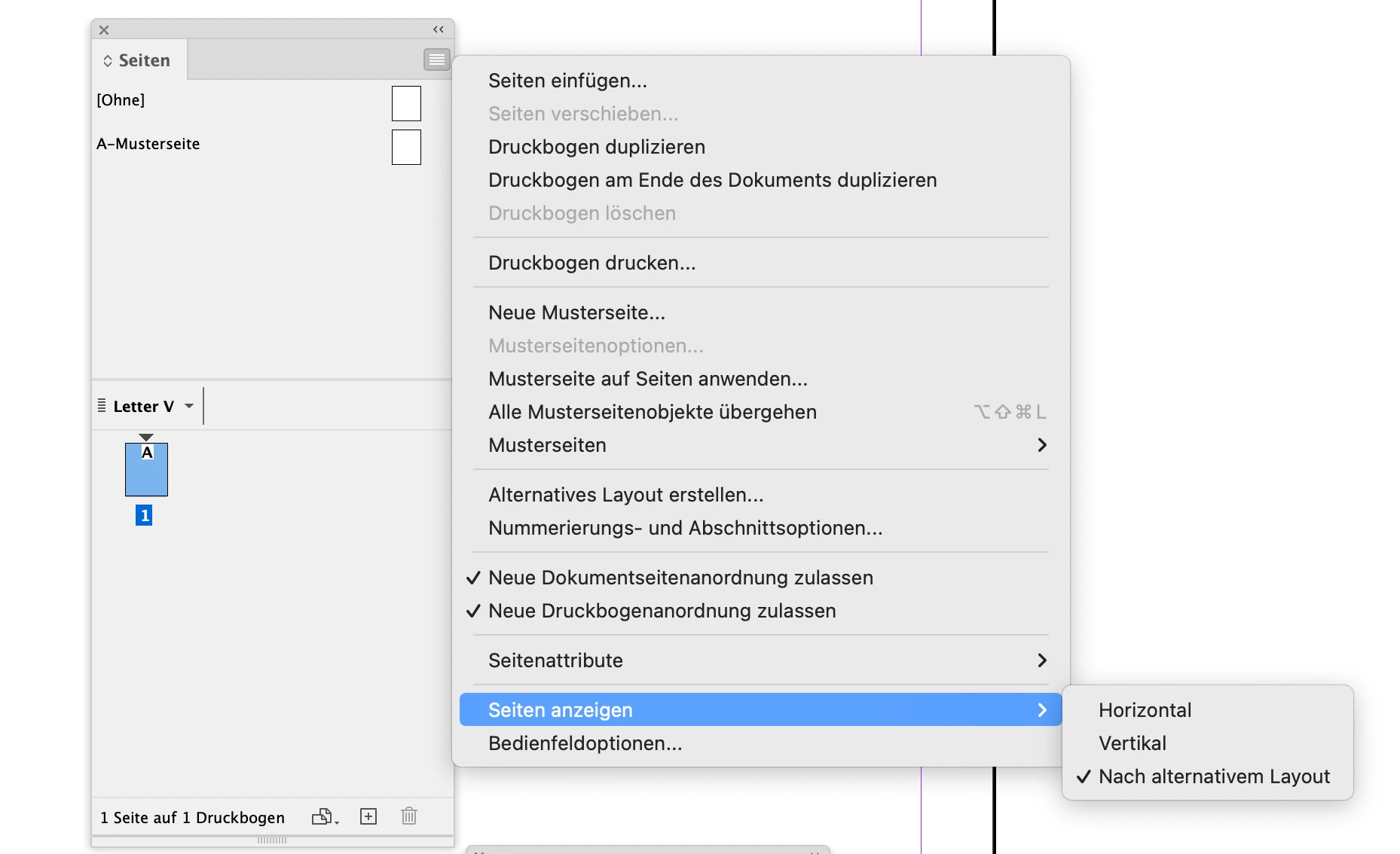 From my German InDesign where I created a new document with one page in Letter format: