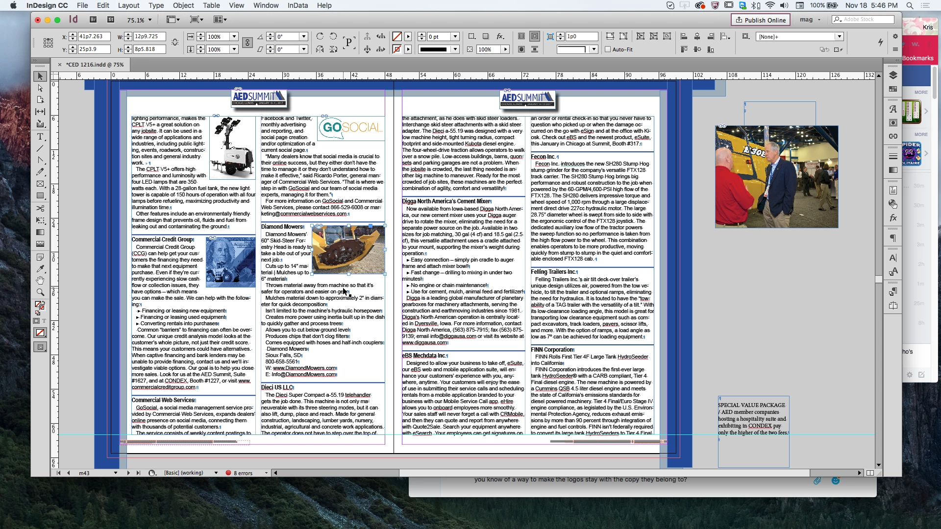 Anyone know how to keep logos/photos with the company paragraph in a 16-page listing? As edits are made, I want the art to stay with its paragraph. Help? Here's a screenshot: