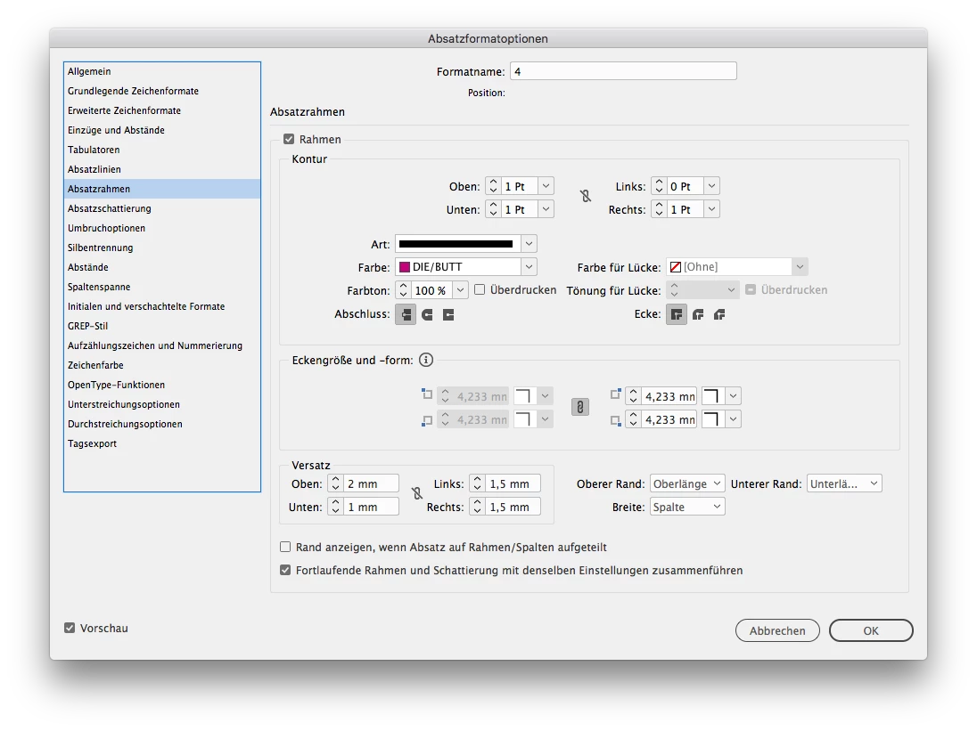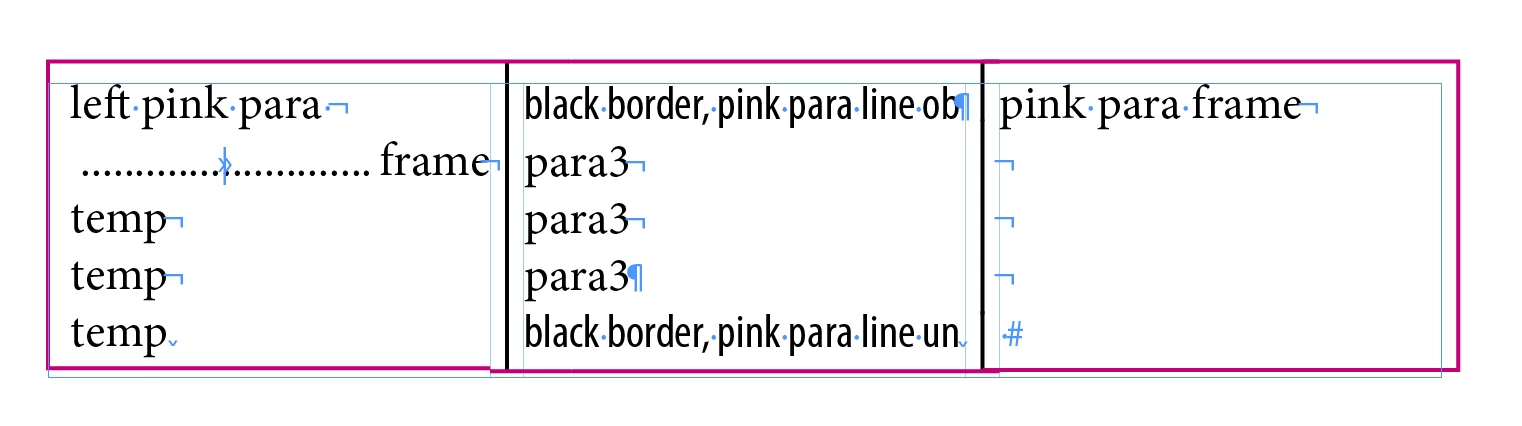 1. The left paragraph style should just use paragraph-border above/left/below (in pink).