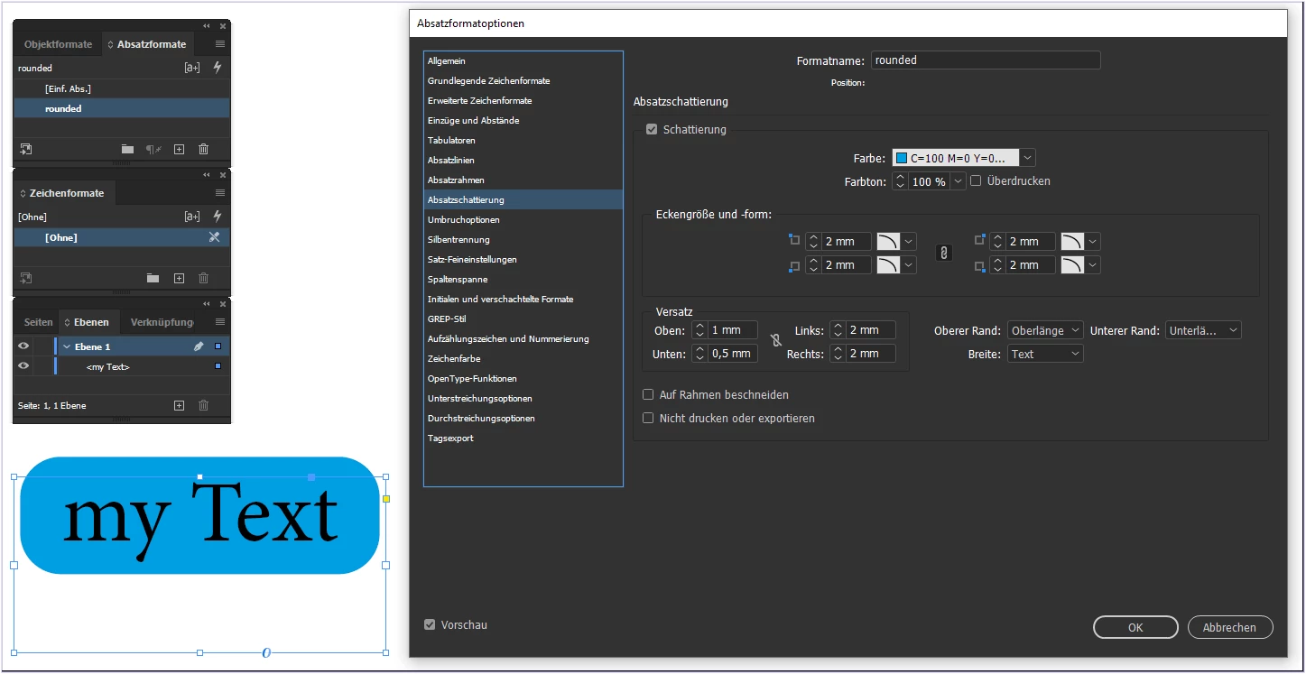 Character style with underline. Stroke style with rounded corner for underline settings, and few spaces before and after text.