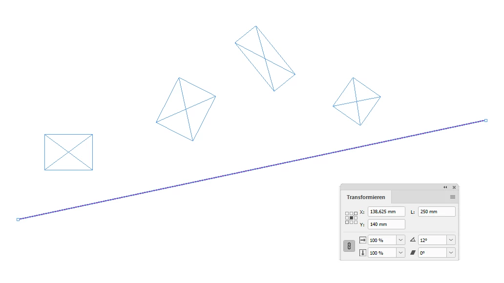 I think you and I are viewing this differently, but your interpretation is also interesting, if I understand it. You think the items should be rotated so an axis matches the slope of the diagonal, right? I'd do that by grouping and rotating the group.
