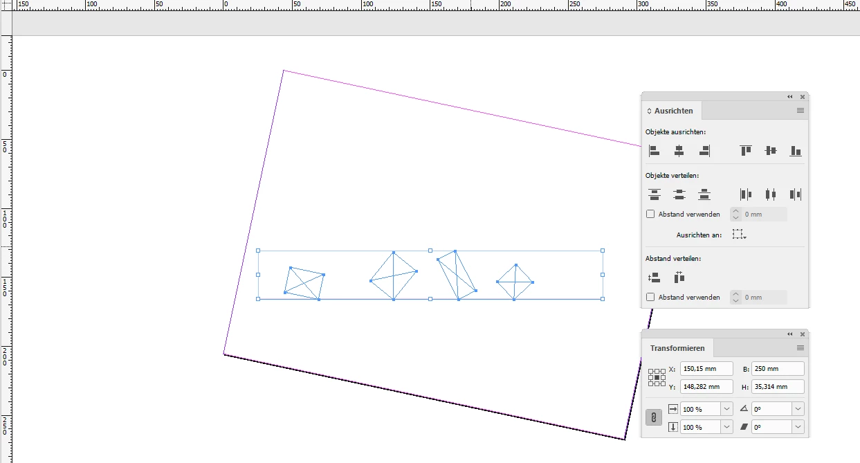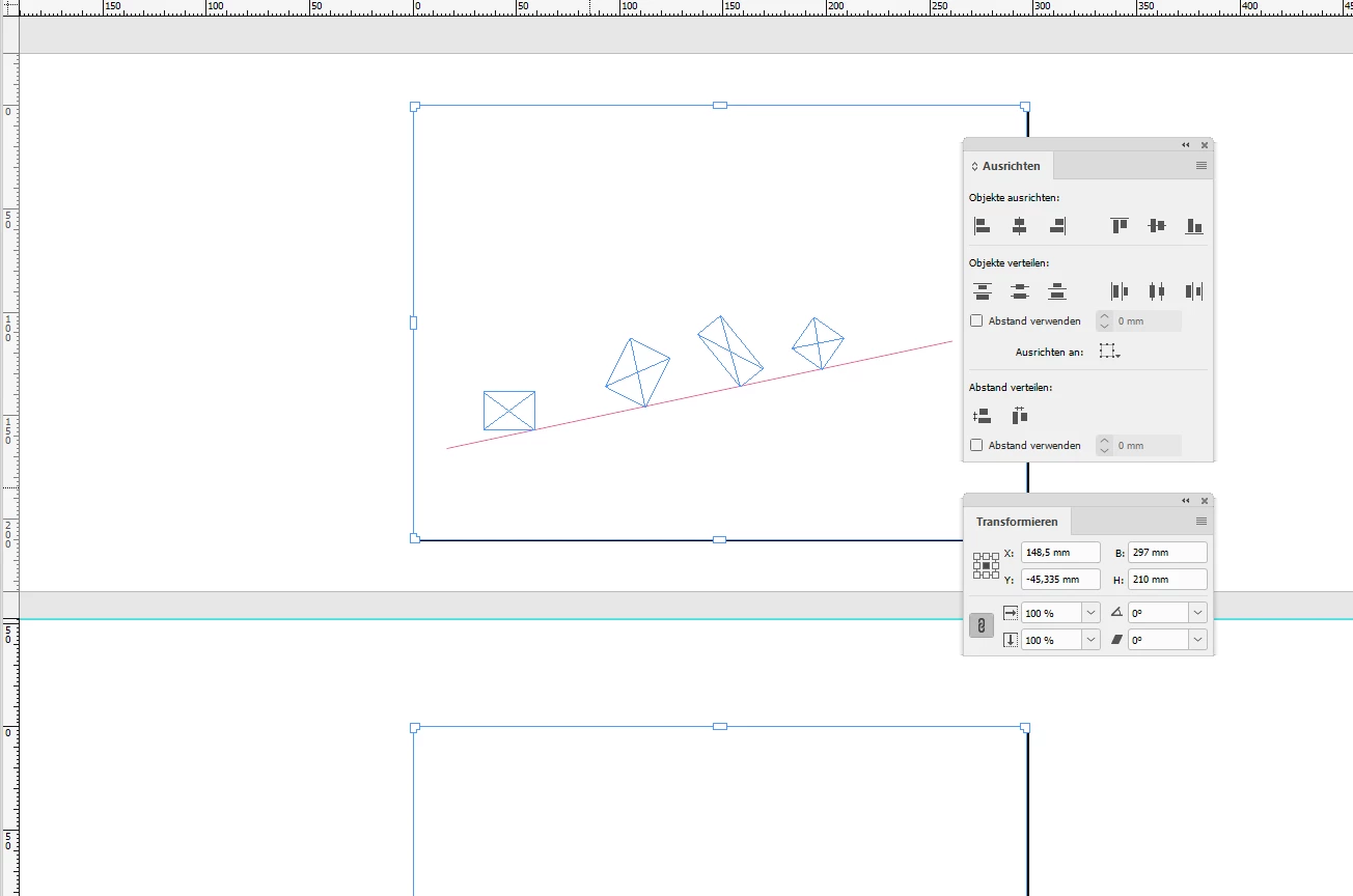 Use the Page Tool to rotate at least 2 pages with -12°. Note: The checkbox is checked that will rotate all elements on the page together with the page.
