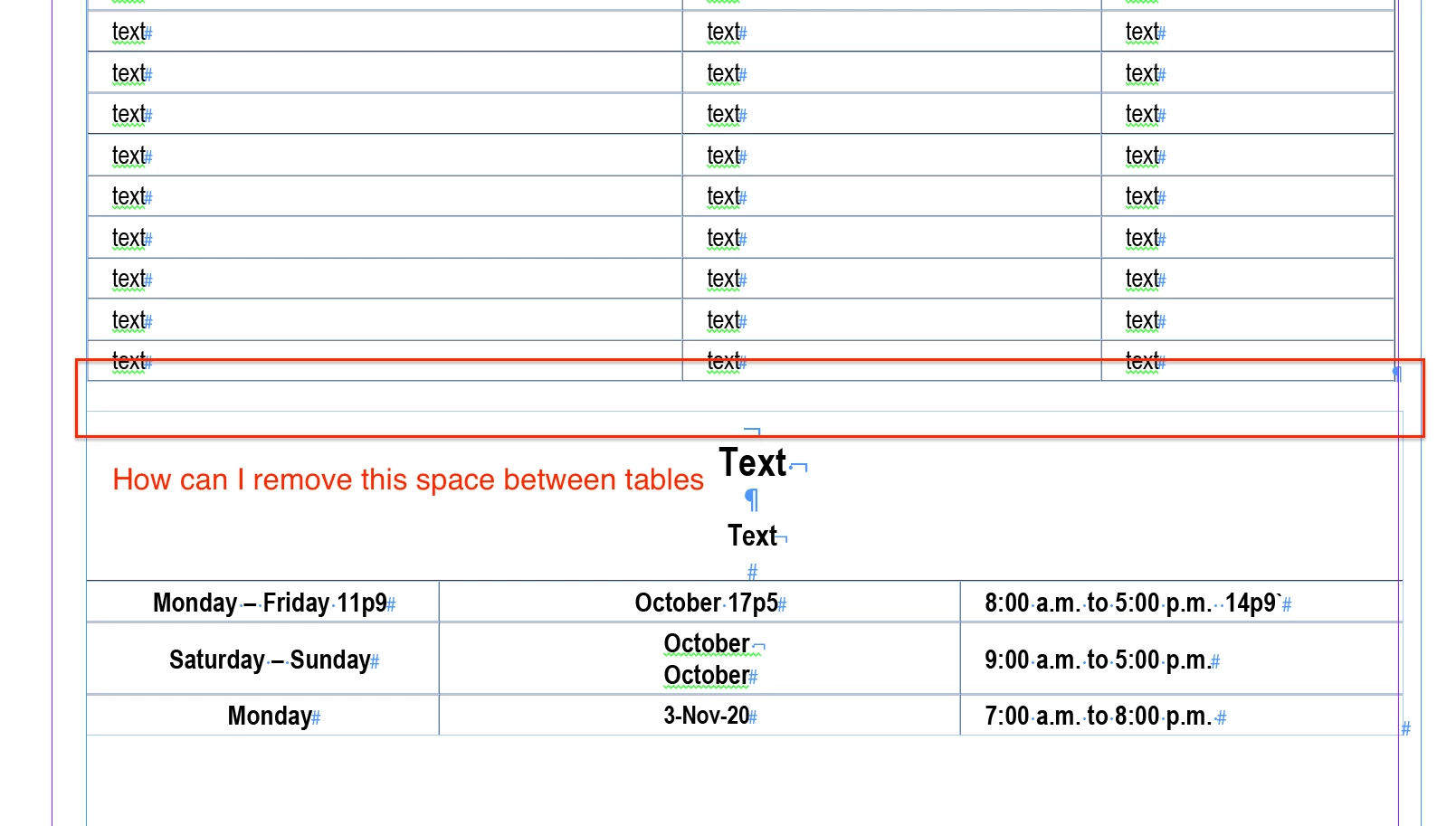 one thing I did try is the pate one tale under the other table. How can I remove the space between the tables? See new pic
