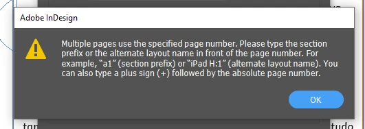 This is the message I get when I try and export individual pages with the numbering and section applied to it. I do not understand this message clearly. When I try to do what its says I still get this messge.