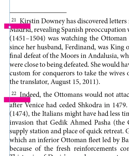 I have a book with many footnotes. Oddly, some footnotes have just a little extra space between the first and second lines of the footnote (see photo, footnote 21 is OK, but footnote 22 has a tad more space). It is the same paragraph style. I have searched diligently and cannot find any discrepancy in any leading, font size, or other variable. Can someone show me how to fix this?