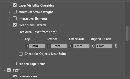 I thought when setting the 3mm to Bleed/Trim Hazard options and Bleed and Slug Setup, Preflight would warn, if the images fall below 3mm. But for some reason Preflight still keeps warning even if the image is exactly 3 mm, it also warns if the image over 3mm, but only at 5mm it stop warning.