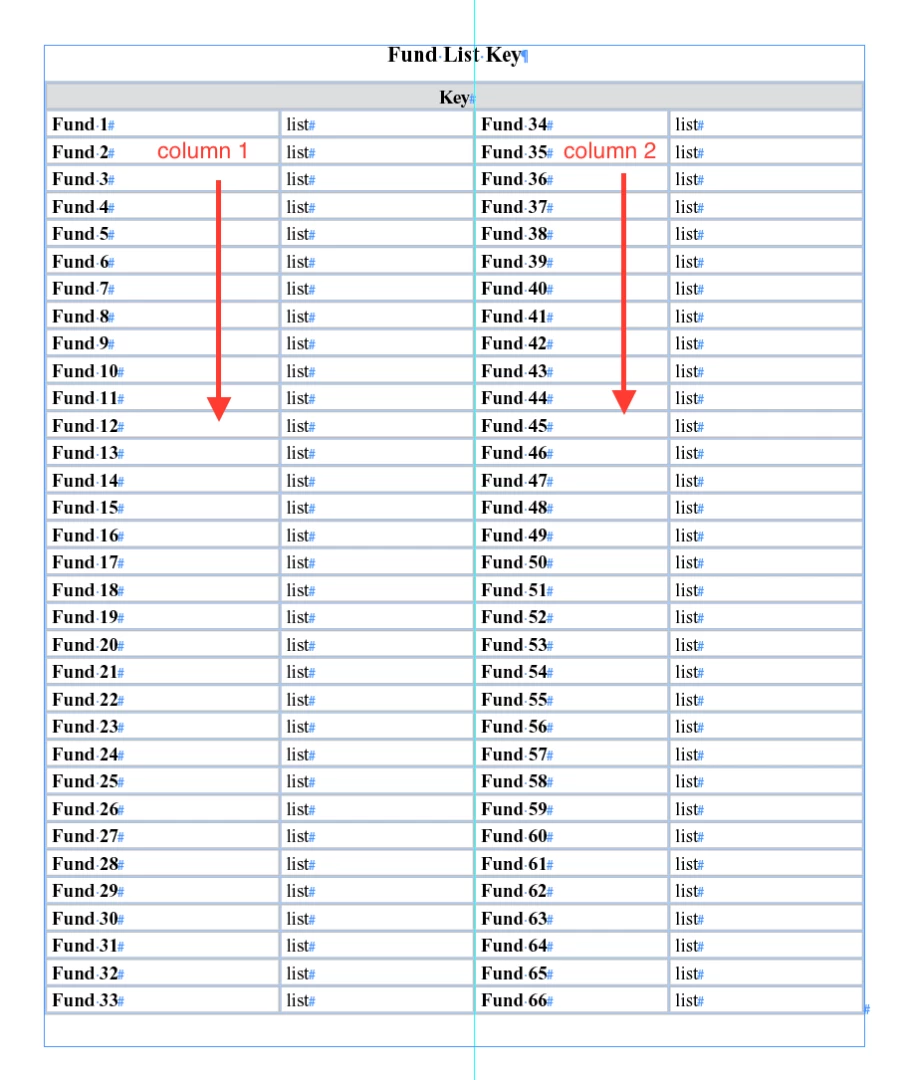 How can I make a table a 2-column table. If there is a edit in column 1, the funds in column 2 just move over to column 1.