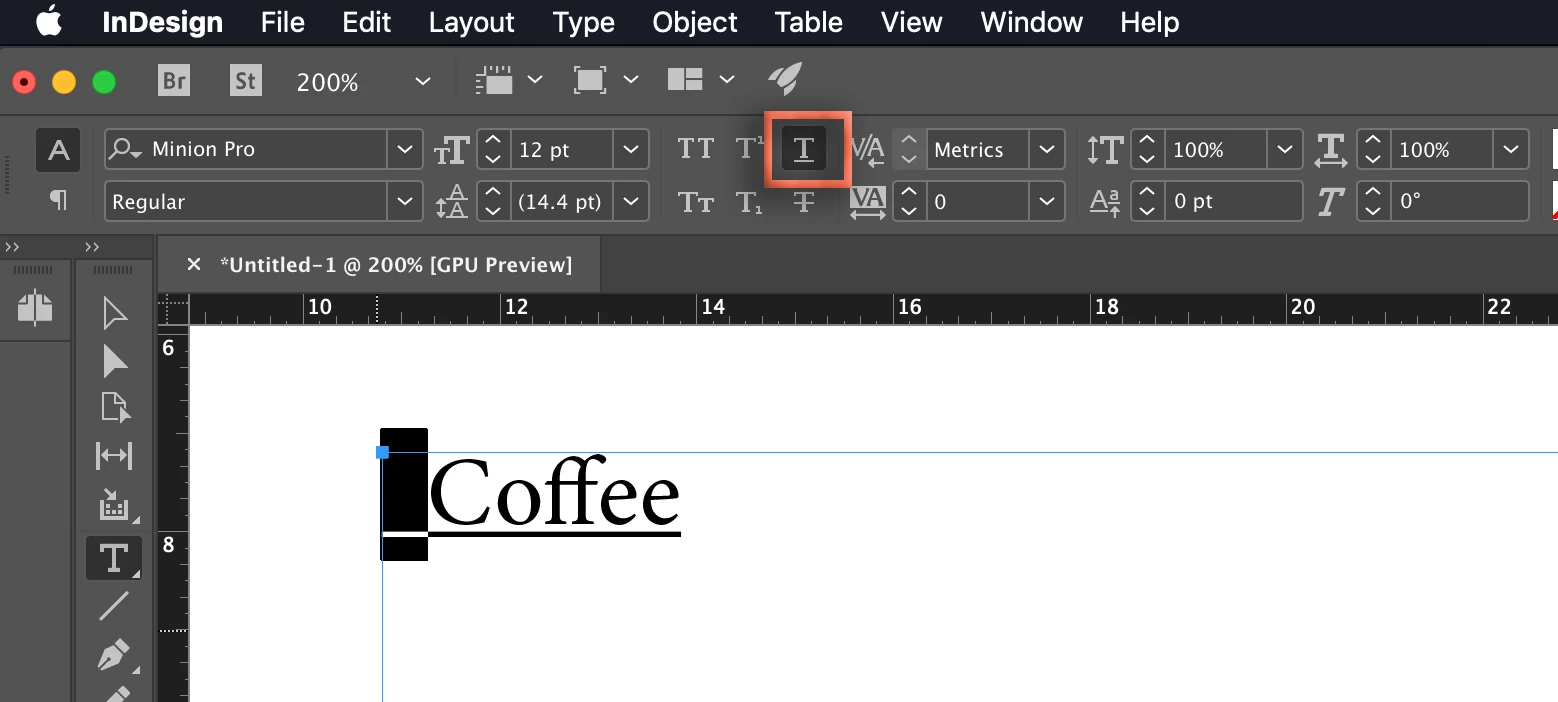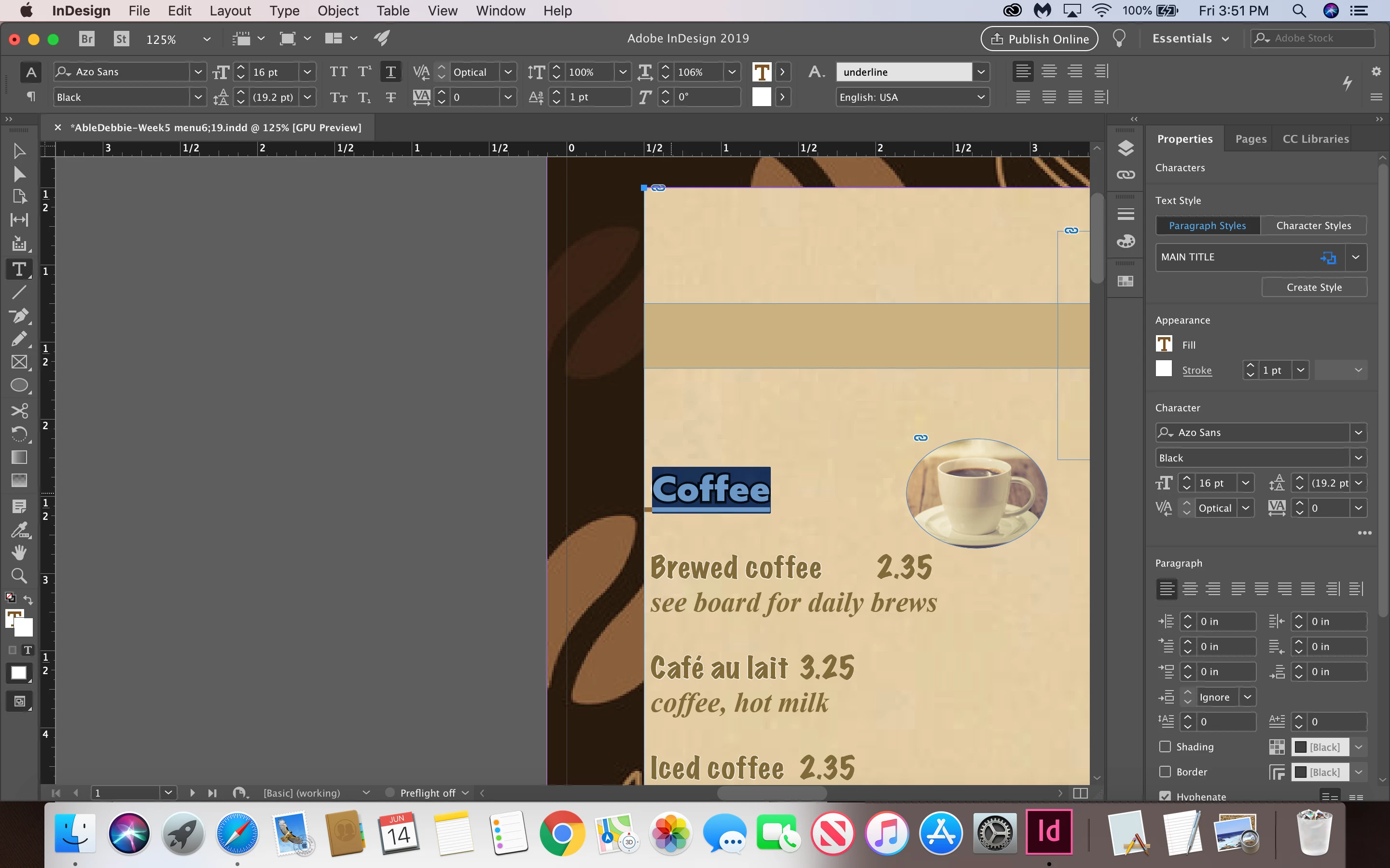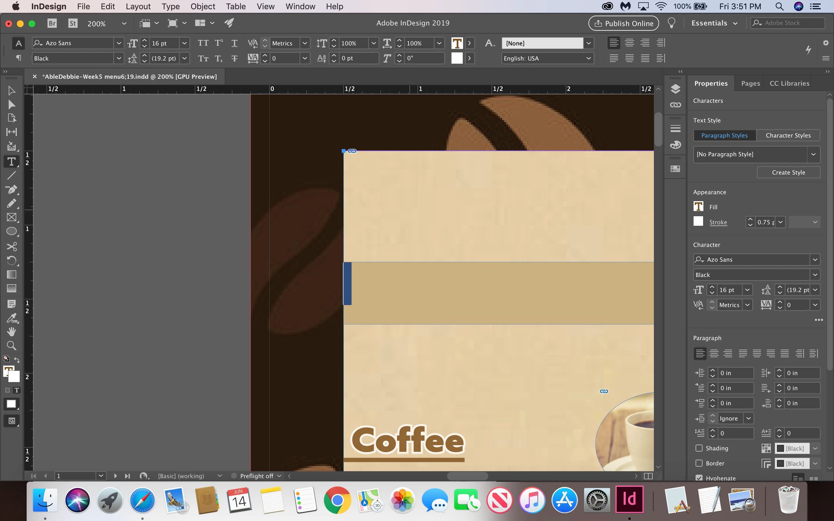 I suspect that the beige stripe above coffee is under another frame. Hold the Cmd key and click it with the Selection tool (the black arrow) until the frame handles on the beige stripe appear. Cmd clicking allows to you select objects that are fully blocked by other frames.