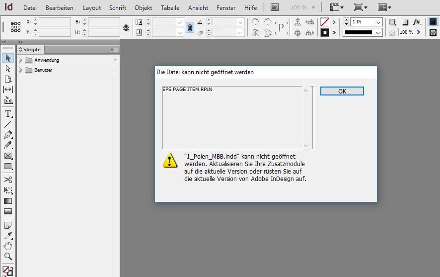 Trying to open a version-2.02-file with for ex. CS5.5 gives the error "EPS PAGE ITEM.RPLN" with the request to update this IND-Version.
