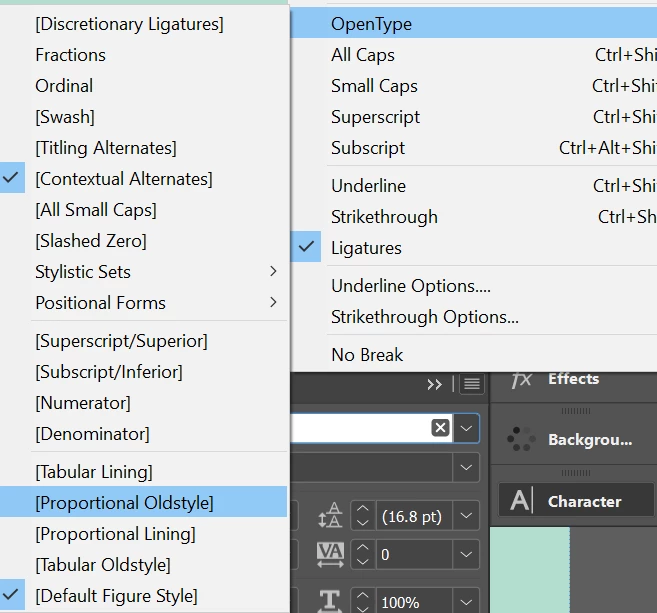 Is there a way to tell what figure styles are available to a certain font on fonts.adobe.com without activating the font? Also, I had question about the figure styles in InDesign. I assume the parenthesis around the style means it is not available for that particular font? This is Basic Sans and nothing happens when I switch between the different styles. If I change the font to Arial then it takes the parenthesis off and the styles do actually effect the font. I was trying to use Tabular Lining with Basic Sans but I'm thinking its not possible.