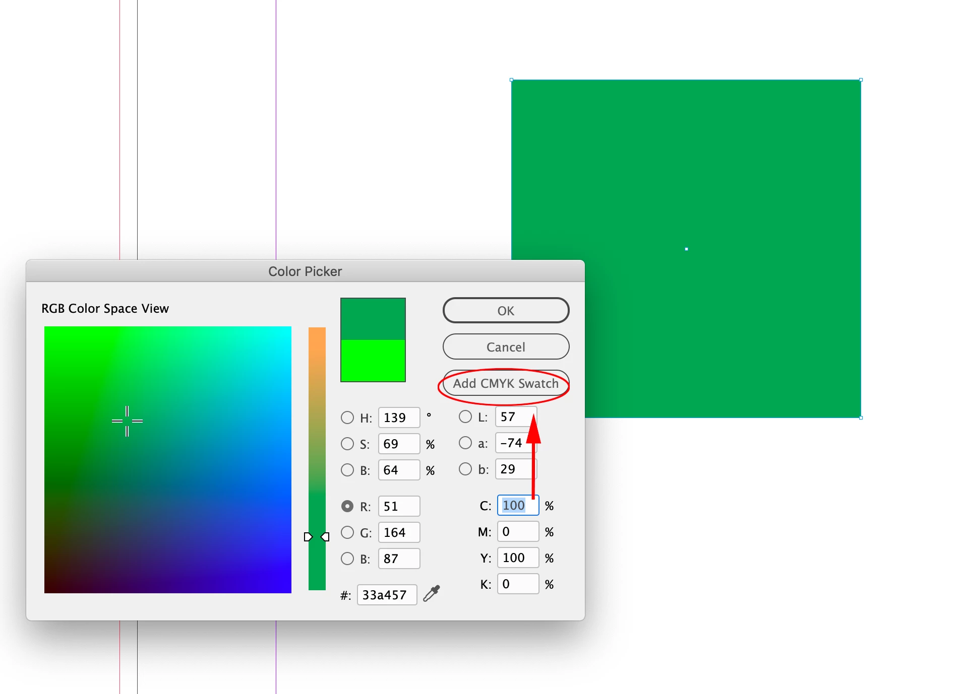 Hi @MiandaPhotography , InDesign lets you mix CMYK, RGB, and Lab colors in the same document. The Color Picker is context sensitive, so your screen capture is showing the conversion of the chosen RGB color to CMYK because your cursor is in one of the C,M,Y,K value fields: