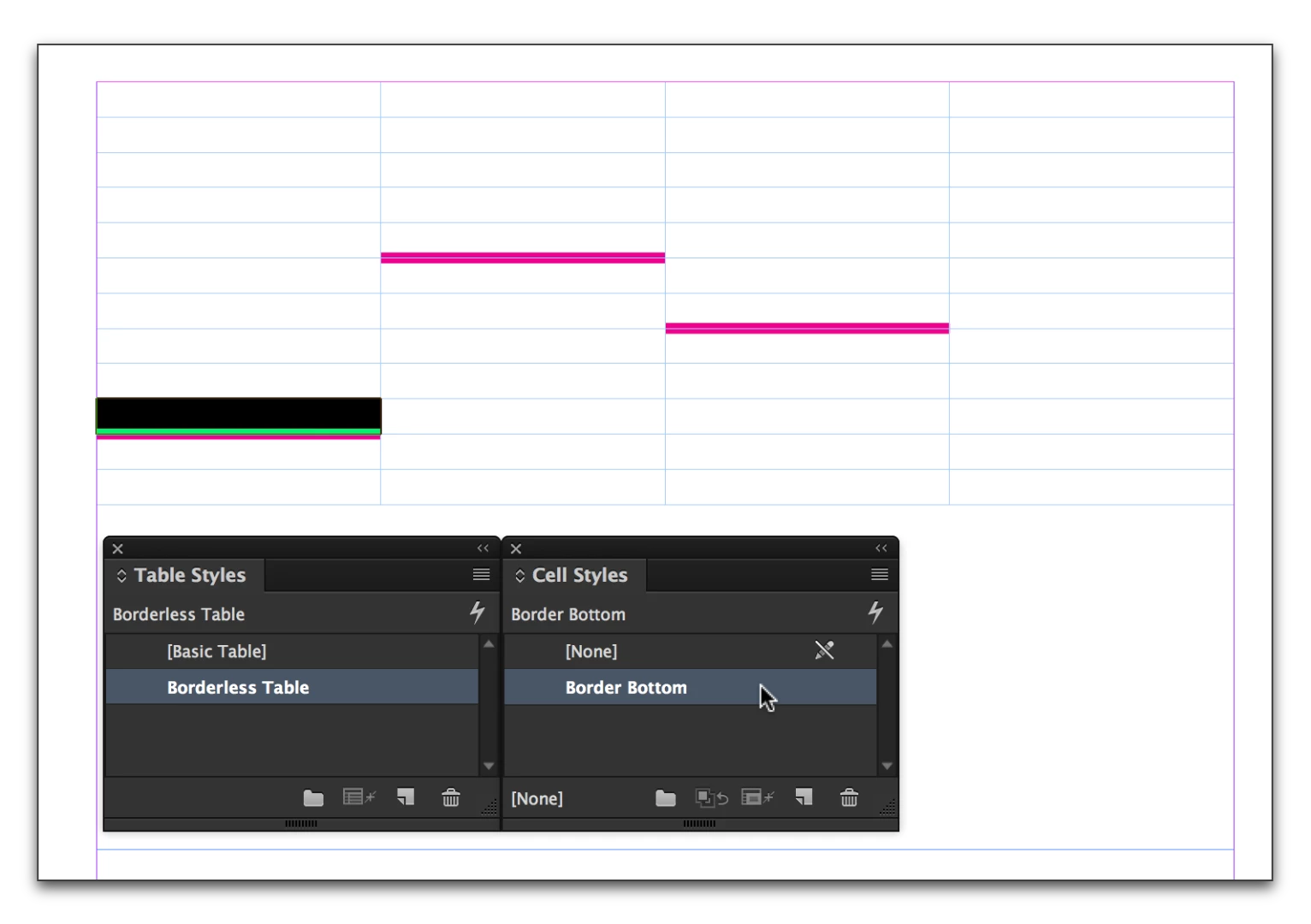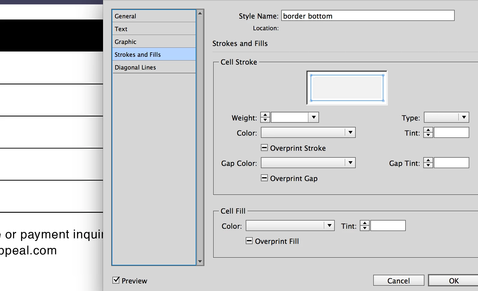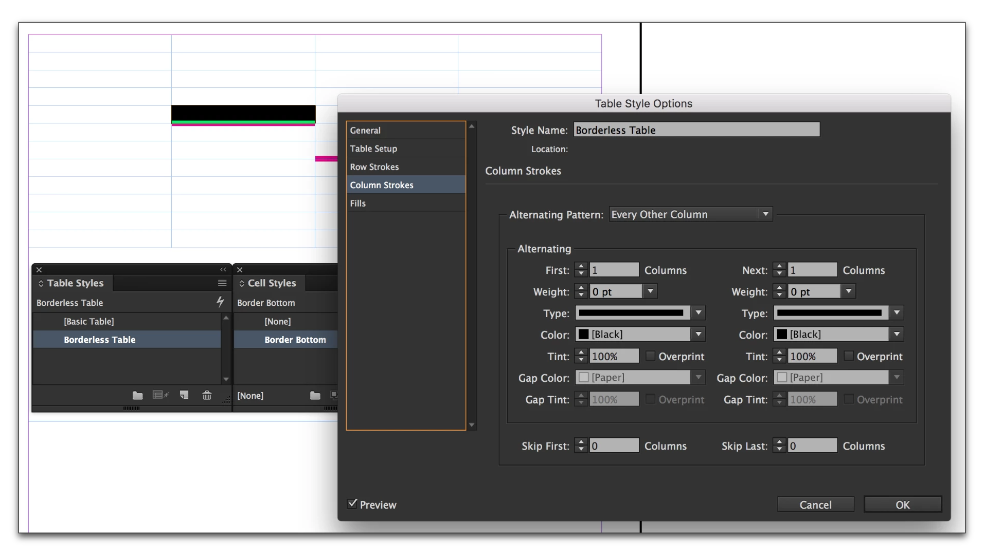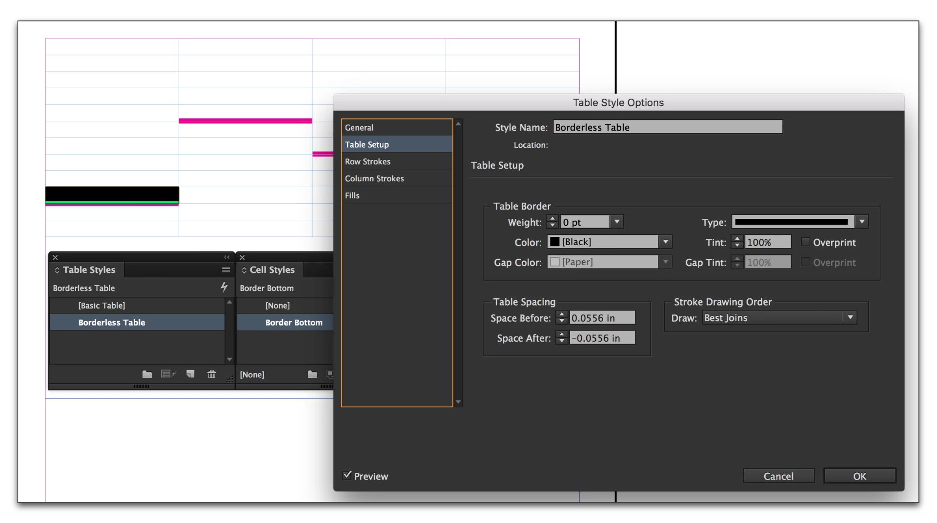 Indesign Cell Styles Don't Show Border Settings