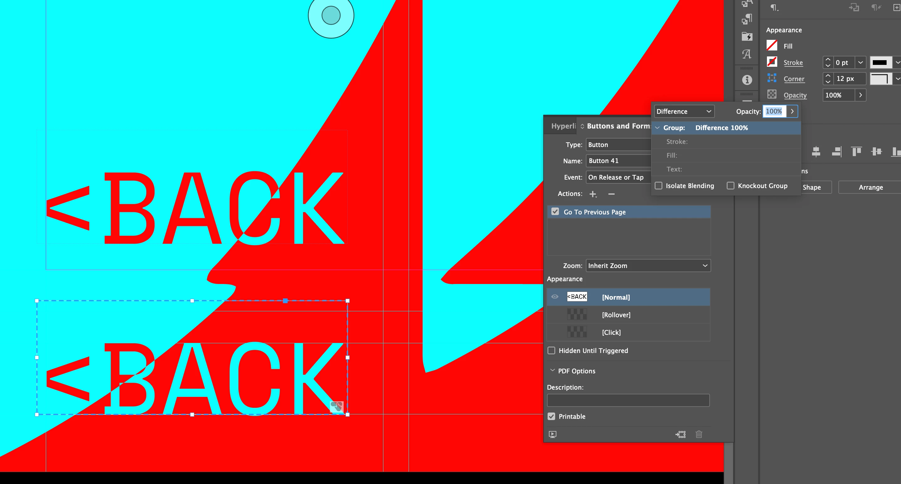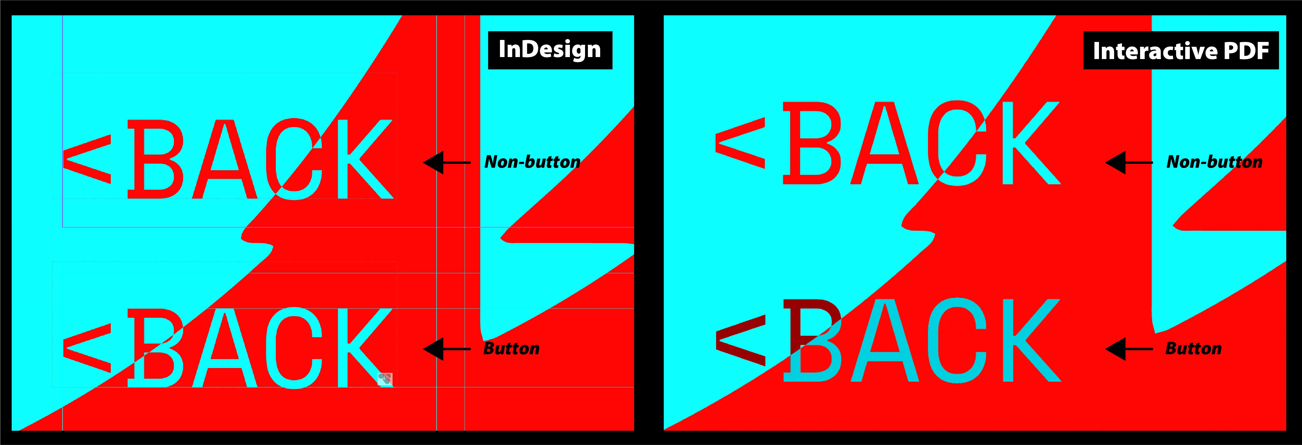 Hey - I noticed that InDesign makes buttons appear darker when exporting as an 'Interactive PDF.' I have a button with white text (no background) and set the blending mode to 'difference.' Everything looks normal in InDesign, but when exporting it as an 'Interactive PDF,' the buttons appear much darker. This only happens when the object becomes a button. I have copied the same object without the button feature, which appears in the PDF completely normal. I have attached screenshots from InDesign and the Interactive PDF export. I have also attached the button settings and blending mode setup.