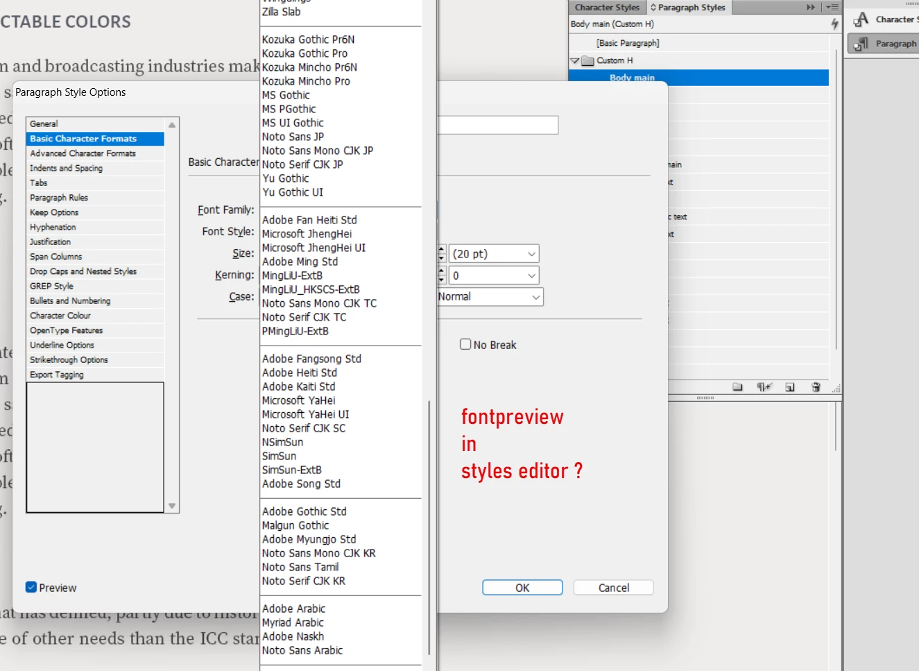 InDesign CS6 - paragraph styles editor - font preview possible ?