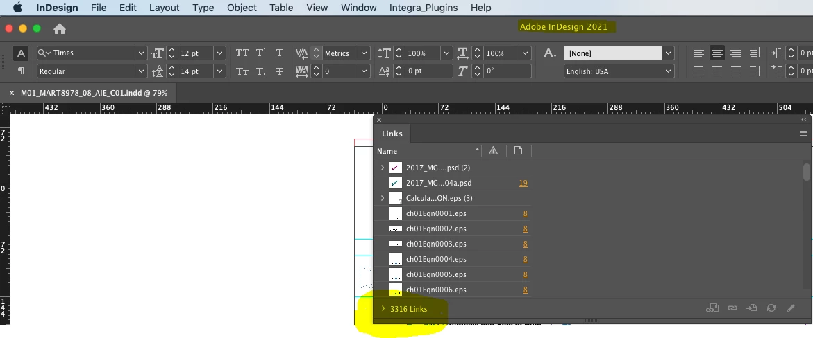 We are typesetting in Adobe InDesign 2021 on MAC OS. In a particular Math book, each chapter contains around 3300 images. All the links are available in our shared server. After importing all those images in application file, then InDesign gets very slow. If any actions done in InDesign such as updating modified image, relinking image, text frame movement, moving to next page etc., it takes 5 to 10 seconds slower. We are struggling for paginating this file.