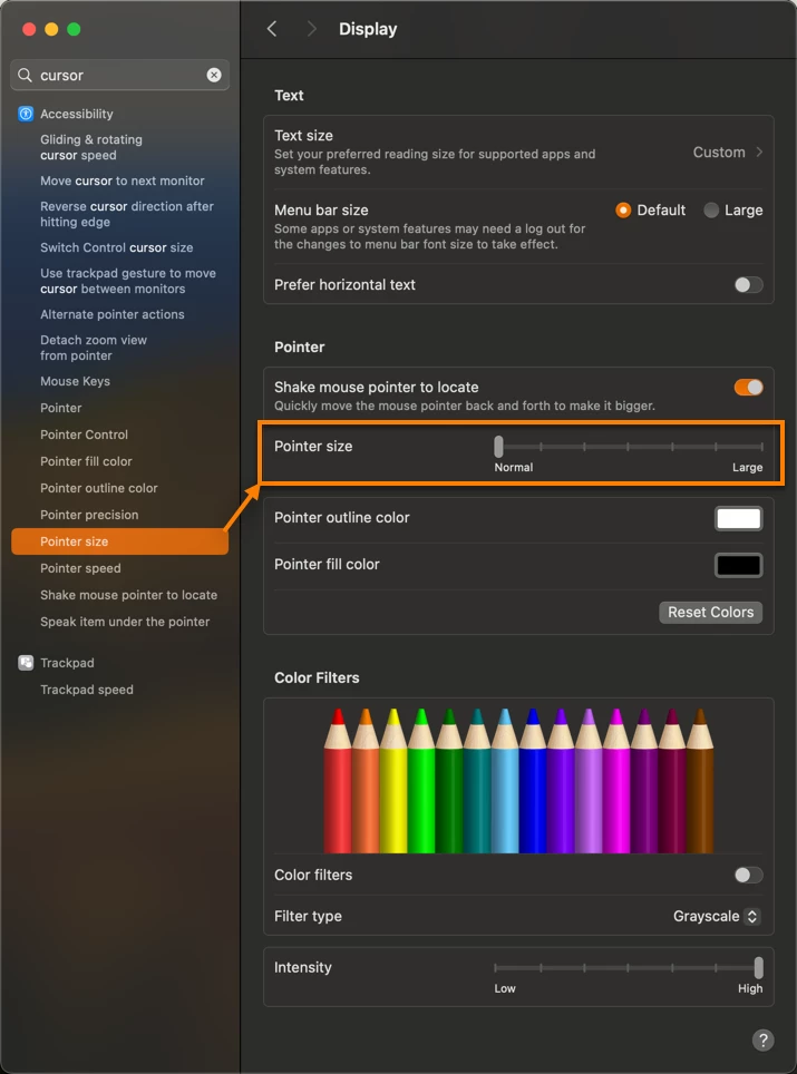 Or play with Pointer Size in Apple menu > System Settings which impacts the cursor size, but nothing else. I'm thinking this is what you're looking for.