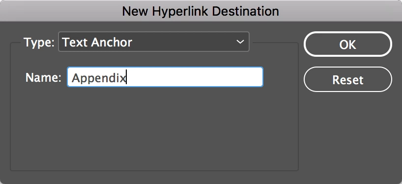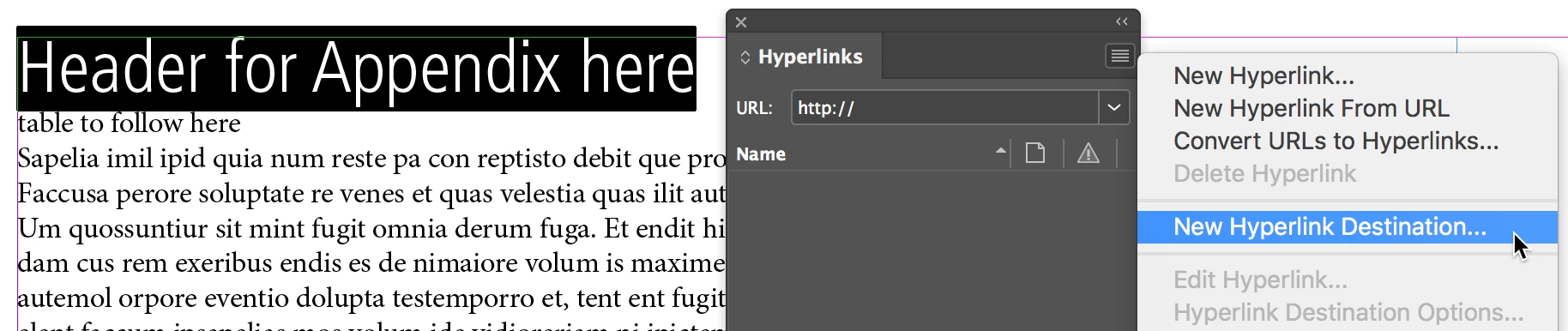 I've created 6 separate pages in InDesign CC2017 with 6 needing to link to a 7th appendix page which is essentially a giant table. I've attempted to use text anchors in the appendix table with hyperlinks on the other six pages linking to specific points in the table. I'm then exporting all 7 pages as HTML5 files.