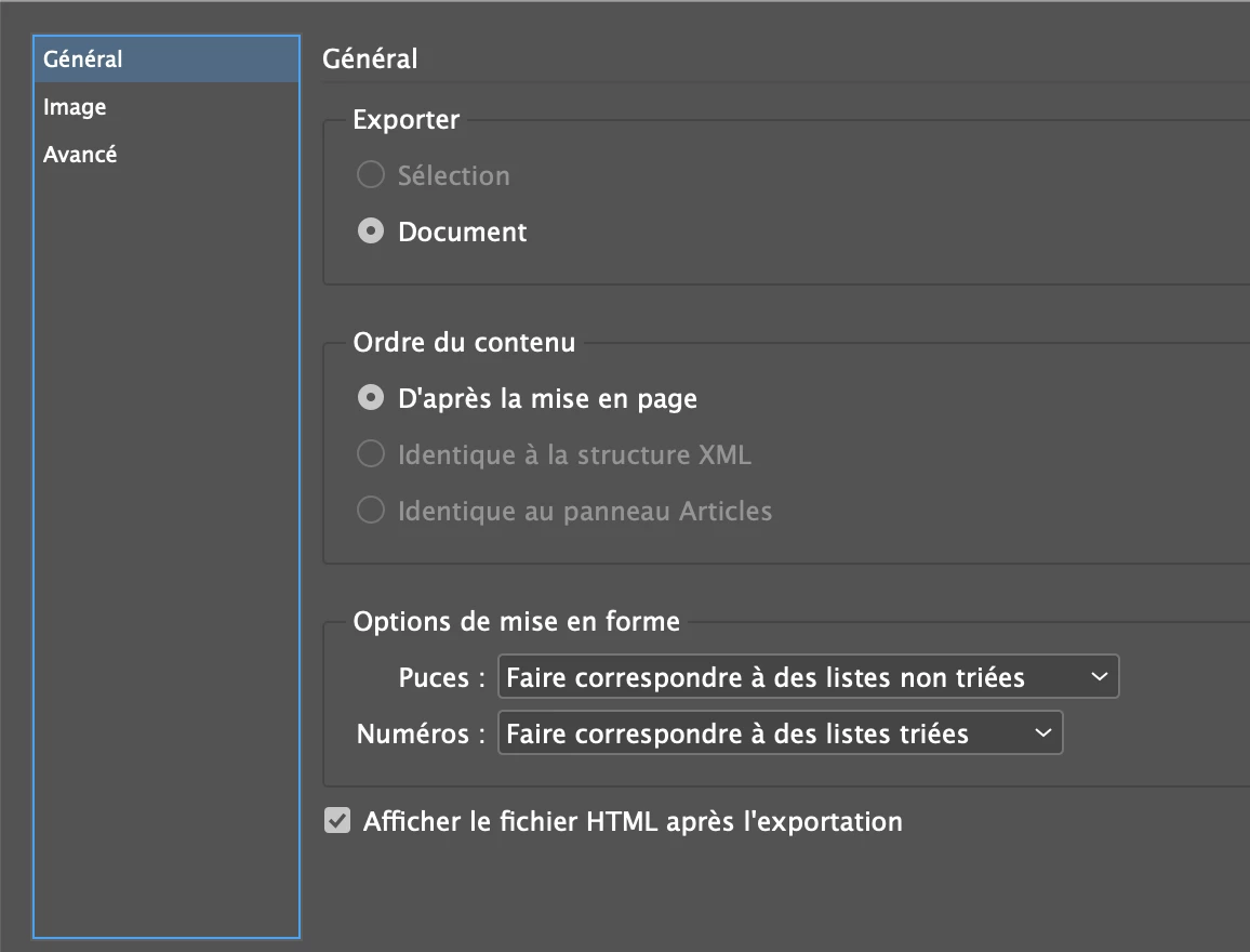 How do I correct this ? I also notices that I don't have an HTML folder after the export (only a CSS and Images folder...)