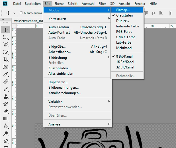 Weiter geht's wieder mit Modus. Diesmal Modus > Bitmap…