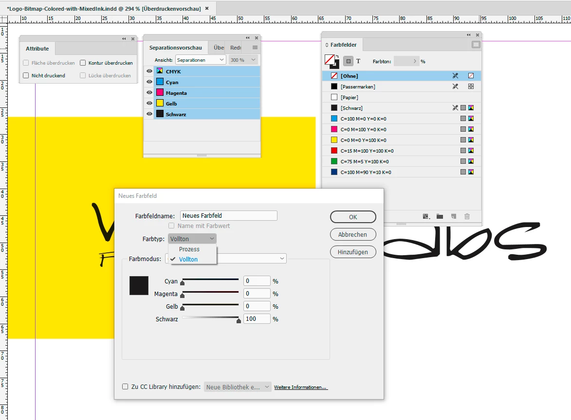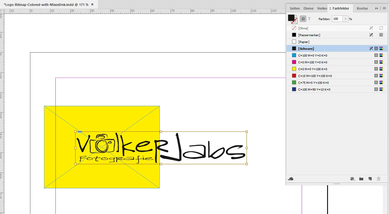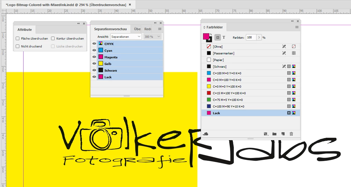 Wie kann ich nun das Logo so einfärben, dass sowohl "Schwarz" ( oder eine andere, beliebige Farbkombination aus Cyan, Magenta, Gelb und Schwarz ) als auch die Sonderfarbe "Lack" auf dem Druck erscheint? Hierfür gibt's in InDesign die sogenannten Mischfarben.