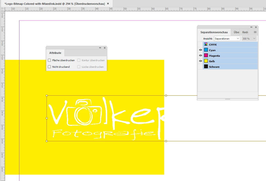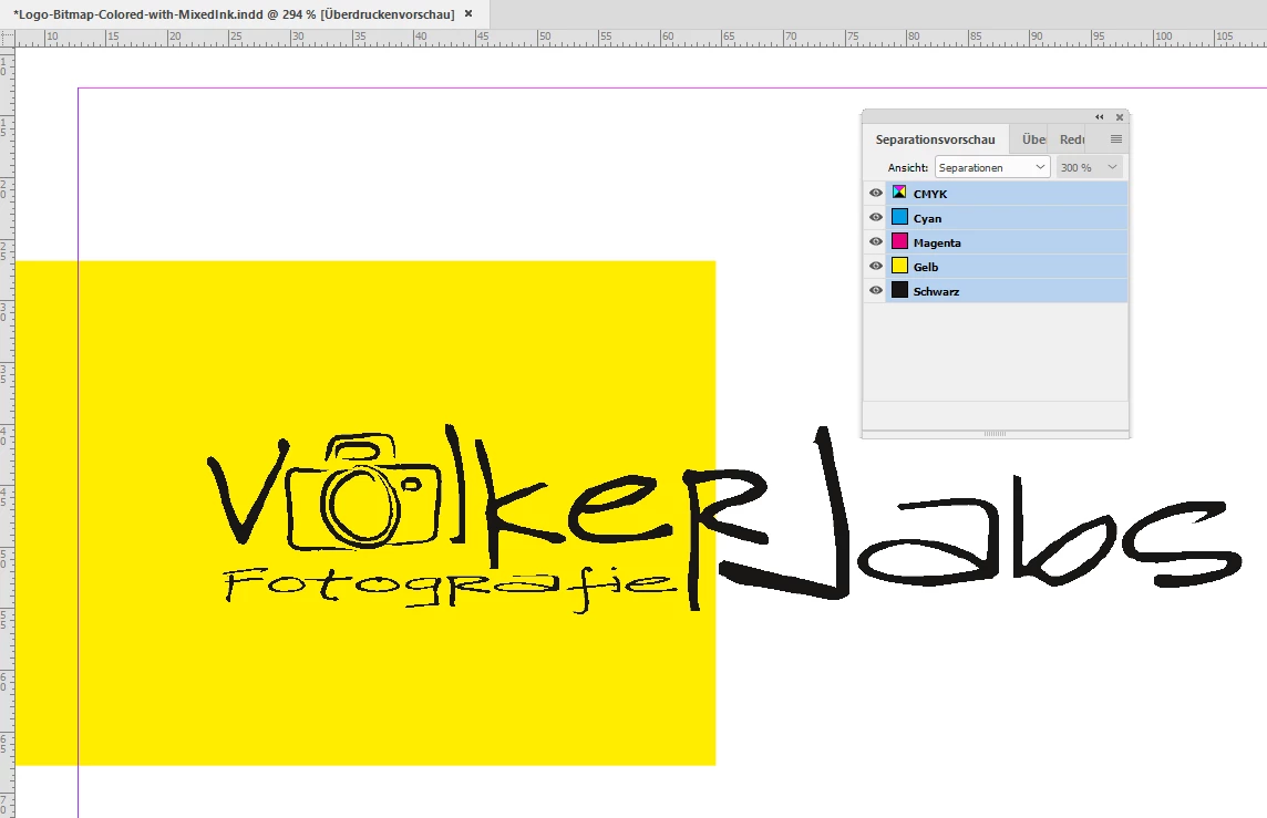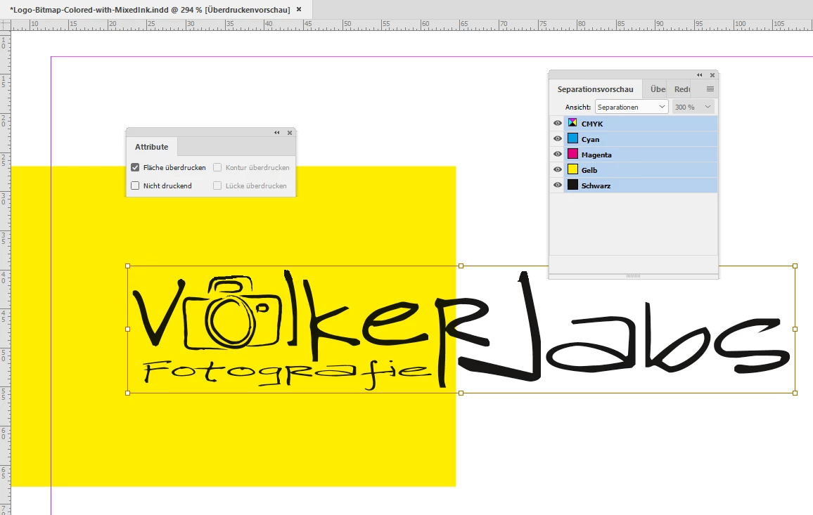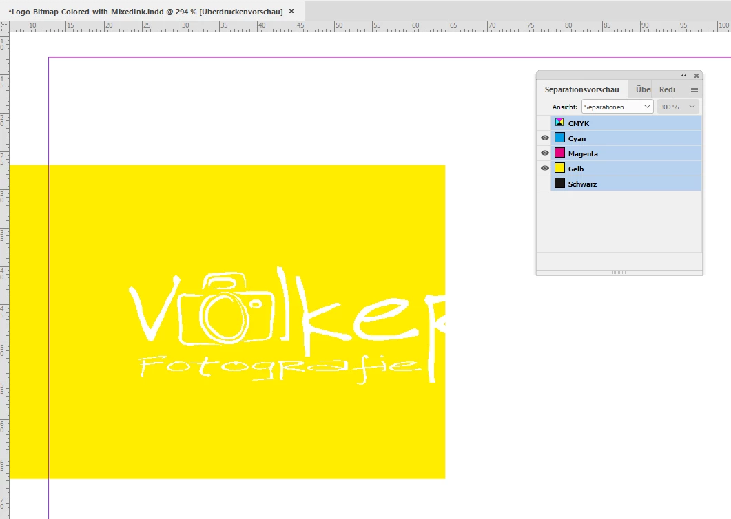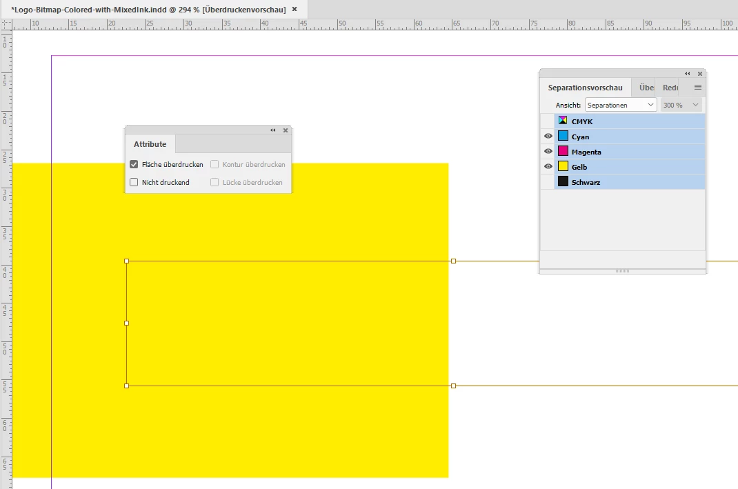 Wähle ich "Überdrucken" für das Logo, erscheint die gelbe Fläche unterhalb vollständig.