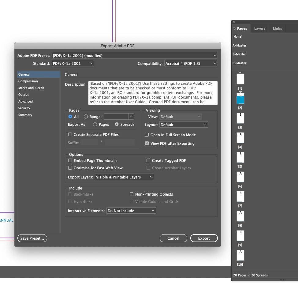 I have created an InDesign booklet consisting of 20 single pages but would like to export it as spreads, I select Spreads in the PDF export option but when it then opens the exported PDF it is still single pages, am I missing an option to tick on or off, or could it be a bug, I just cant seem to get it to export the PDF as Spreads? (I do get some funny things happening in my 'Range' option box that looks a little funky but I'm not sure that that has anything to do with my issue).
