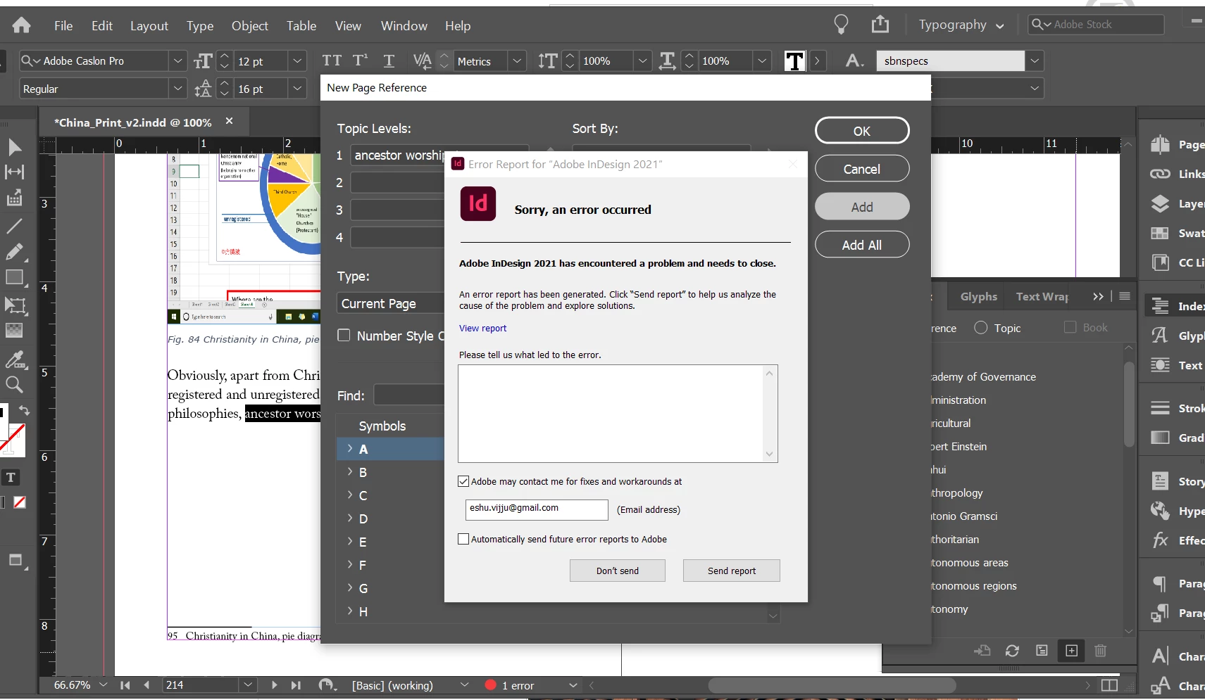 I am trying to add missing Index entries to the InDesign Index and it is crashing everytime. Not sure, where the mistake is.