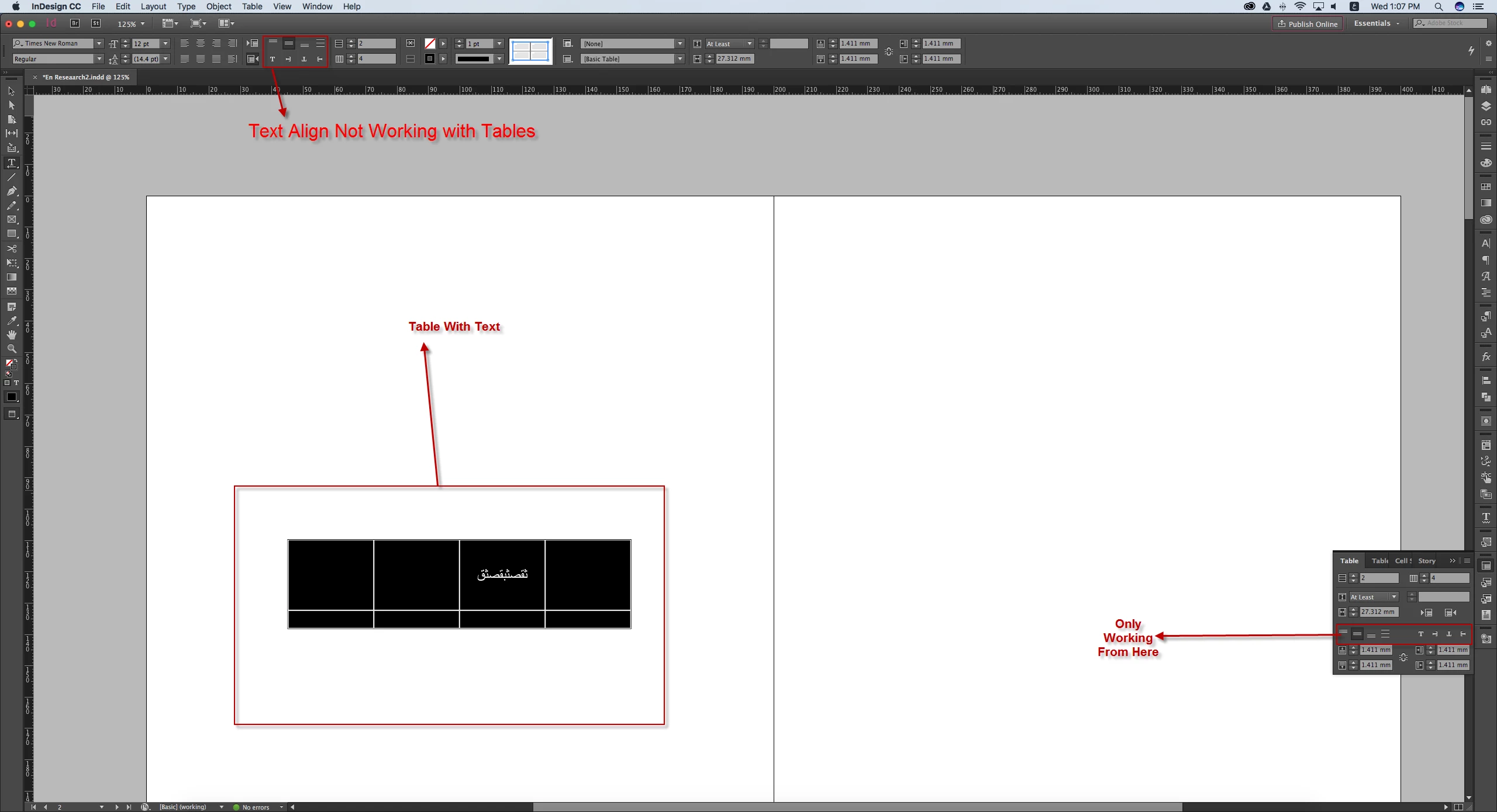 the text Aligning in Tables in In-design after the last update not working .. the issue details shows in the below screen shot: