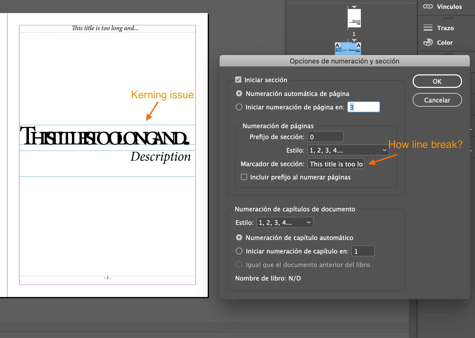 Hi! First at all maybe this is not the right way to use the Section marker. But I need to add a long title in this field and I'm having problems with kerning.