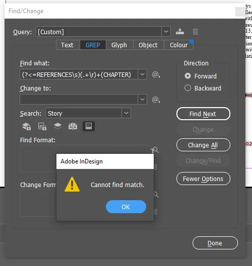 Issues with GREP Selecting Long Text Blocks in InDesign