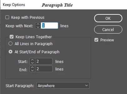 Hi. My paragraphs are working well with my Keep Options settings, except one (Synovial Joints). The settings don't affect the paragraph no matter how I change the settings when the other paragraphs do. What I did wrong, please.