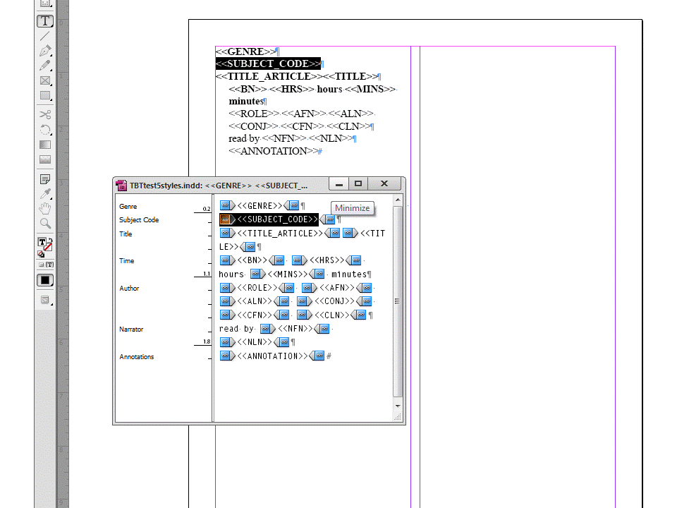 7. Notice that the Subject Code data merge markers are gone, but the Genre data merge markers remain: