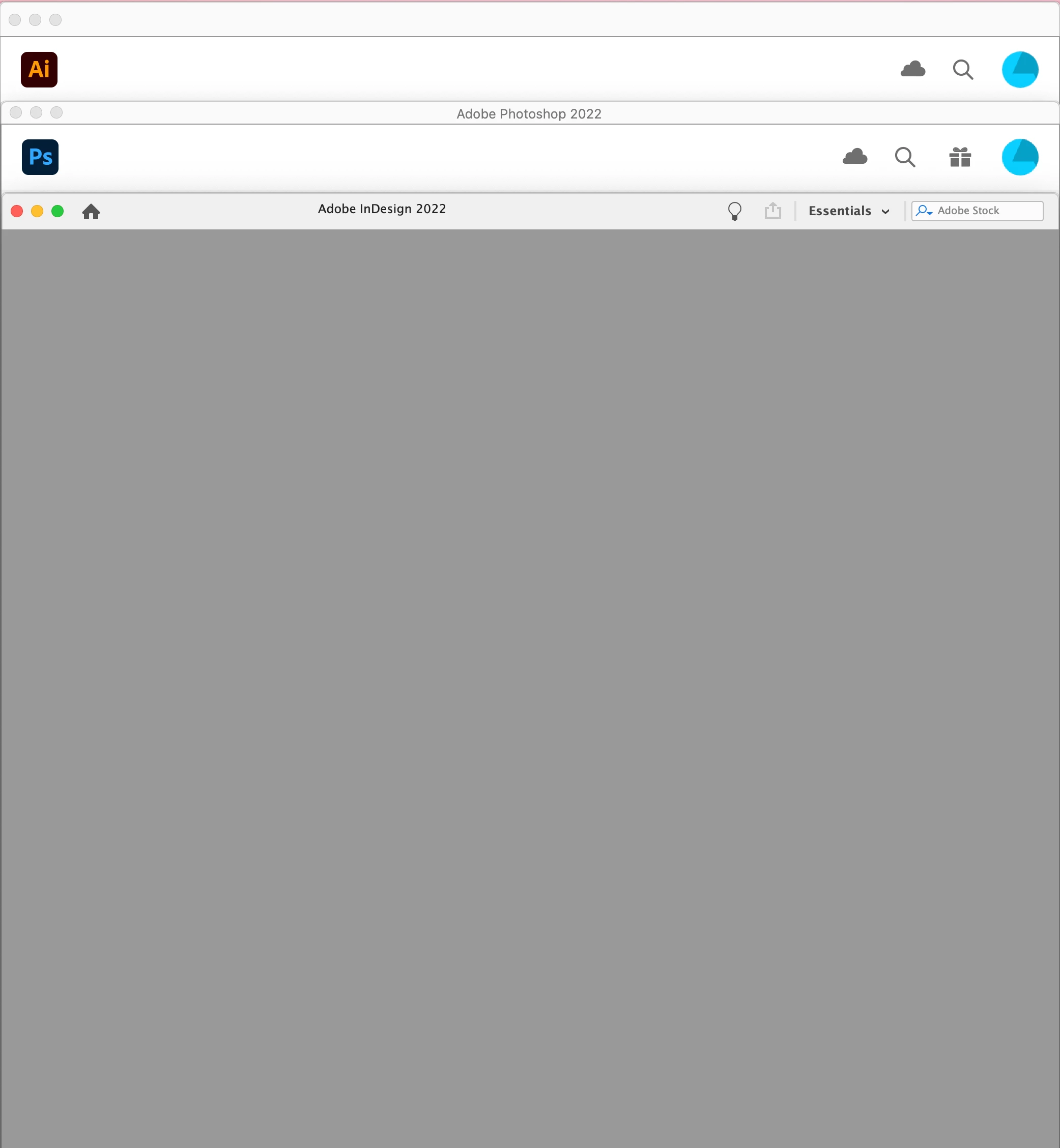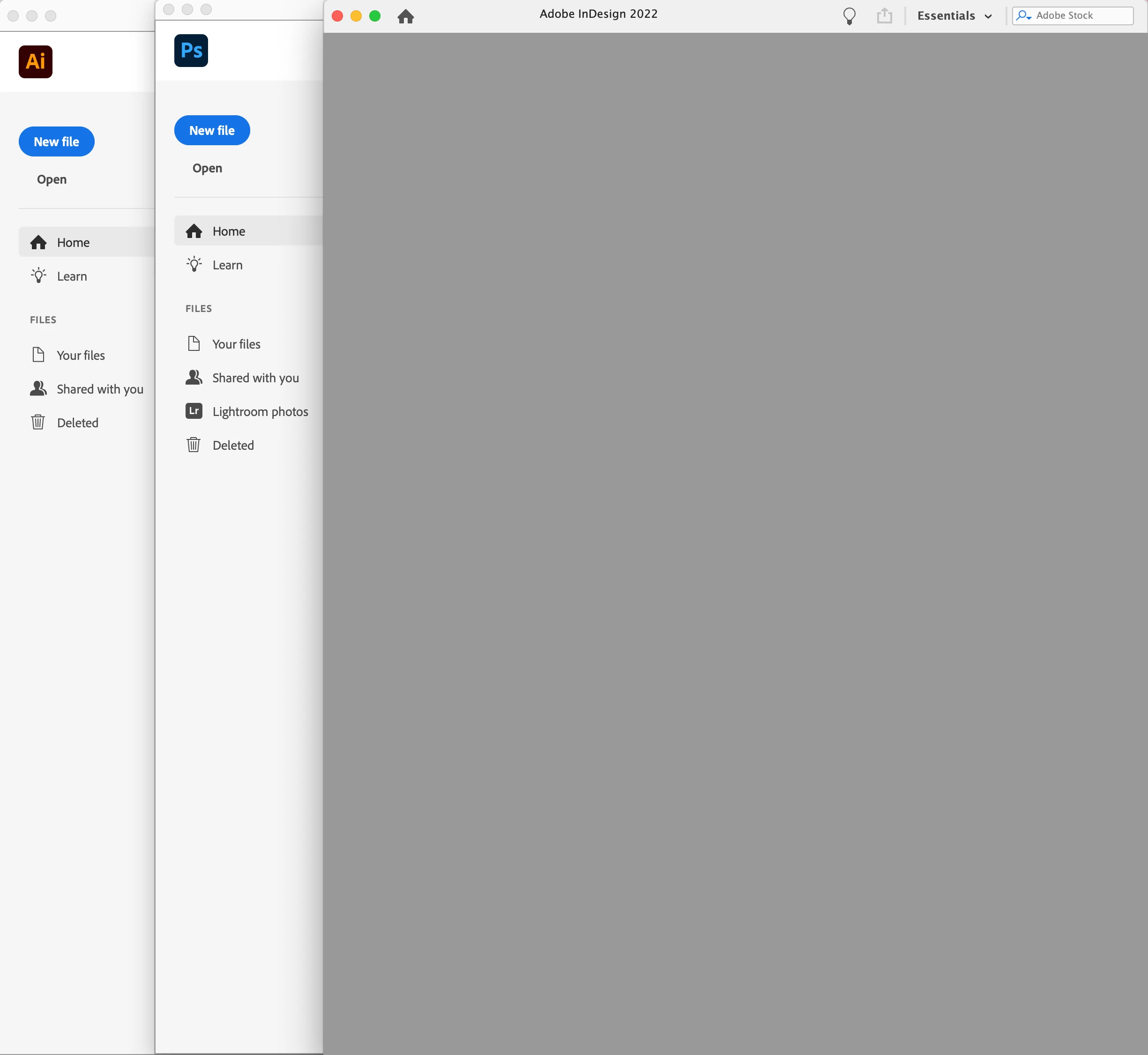 The first thing I noticed was that my InDesign 'opening window' is totally blank and empty unlike the other two.