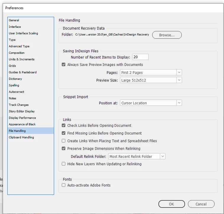 Also, I can't figure out why autosave is not working. I went into Edit>Preferences>File handling but there is nothing relevant in there that I can see? (Image below).