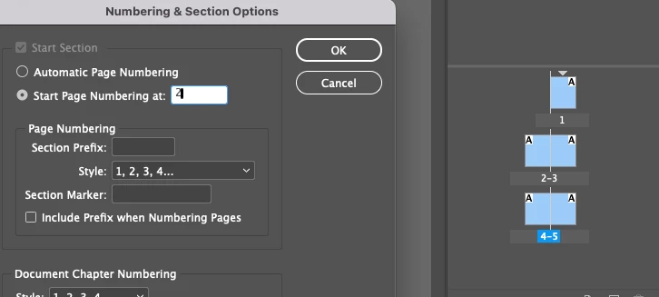in the book page numbering, i have set it to continue from previous section.