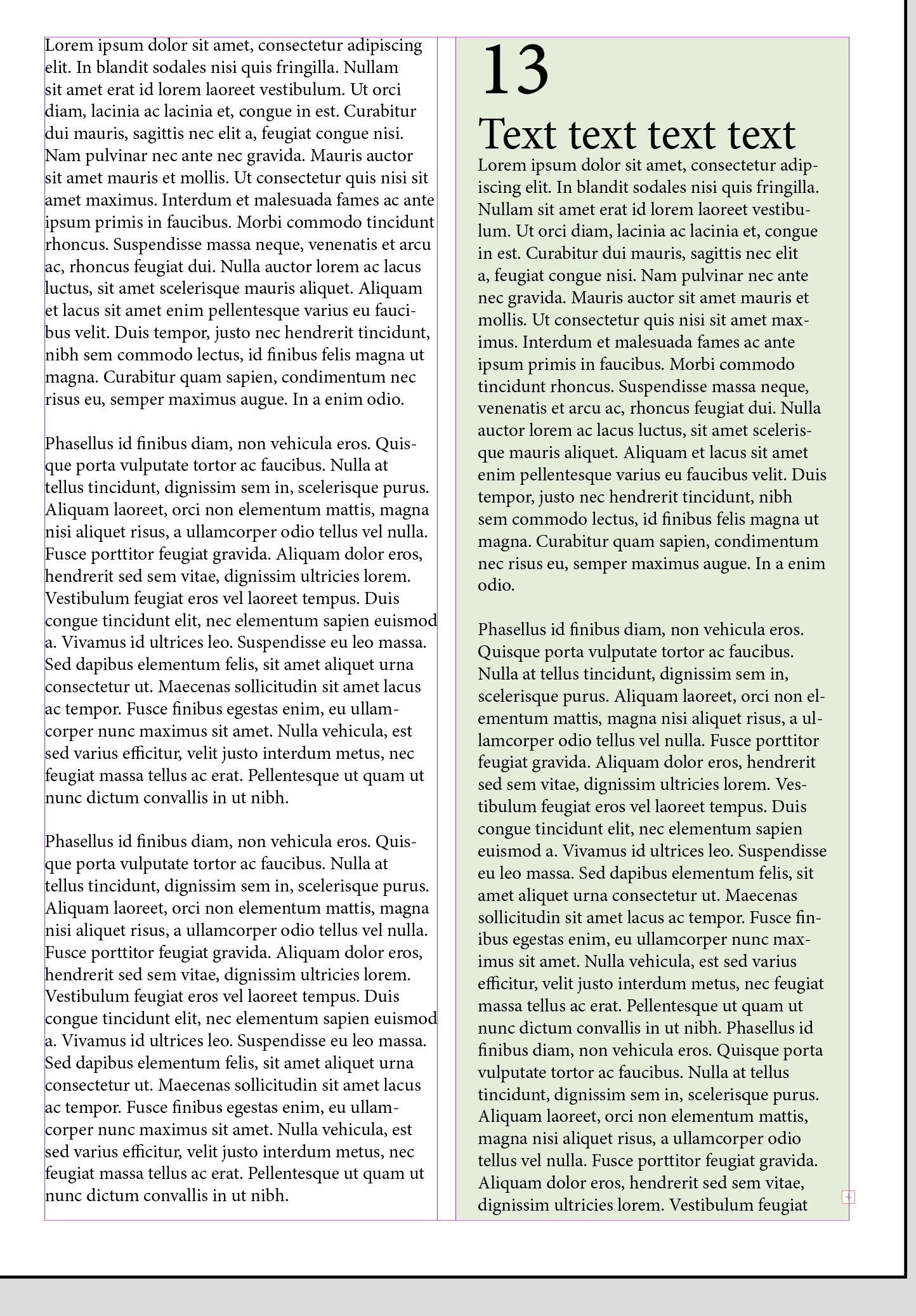 How can I control the spacing between the top of the green box and the top of the text while keeping everything inside the column? My main issue is achieving exact spacing above "13" and at the bottom of the green box. I used left and right indents to adjust the text spacing but cannot use "space before" (nothing happens).