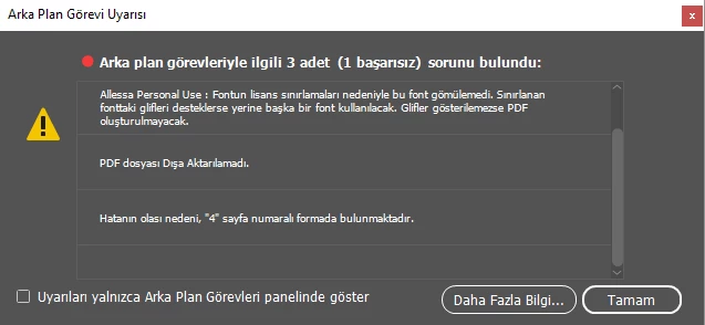 Pdf çıktı almaya çalıştığımda üstteki hatayı alıyorum.