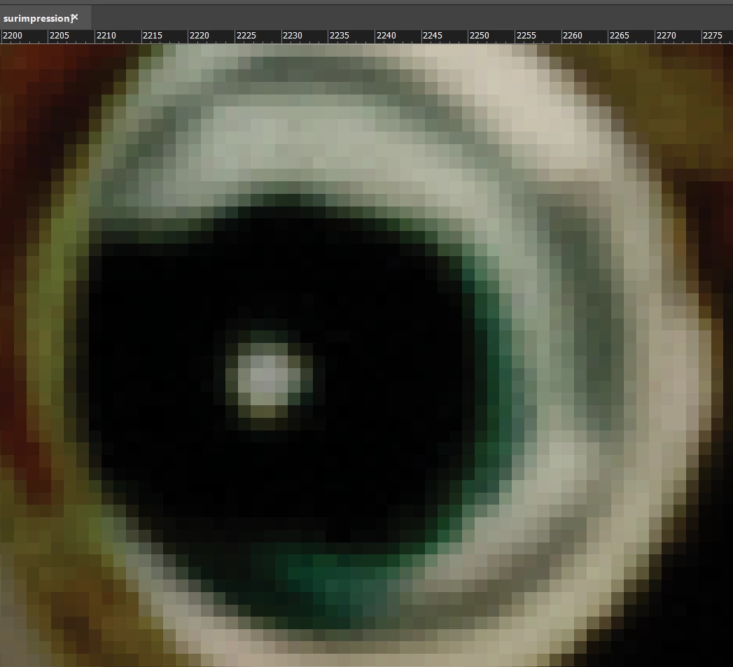 J'ai une image généré par Midjourney que j'ai upscale au maximum. L'imagine en PNG n'est pas pixelisée ; ici zoom à 1310% de l'image :