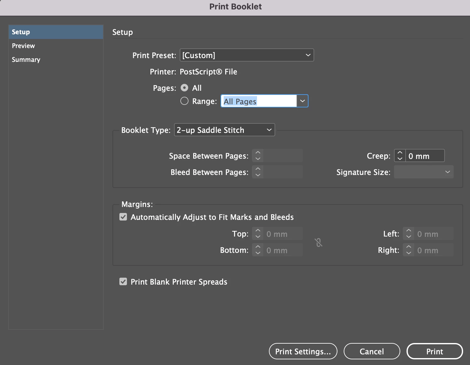 Print Booklet: When opening the PDF in "Preview" it has cut of a piece of the left side