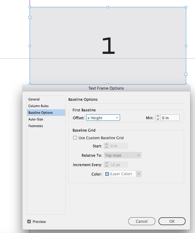I am working with supplied artwork templates from a specific client in Germany. Whenever I select the text in a text box to edit it, the baseline shifts downwards, throwing off the templated text.