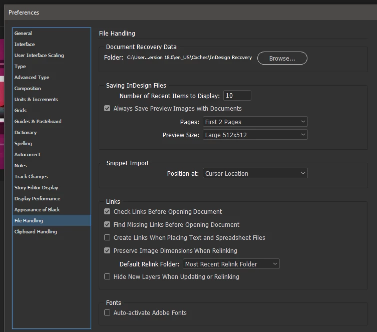 Whenever I open Indesign 2023, v18.1 the Home screen does not display the names and thumbnails of the recent files made.