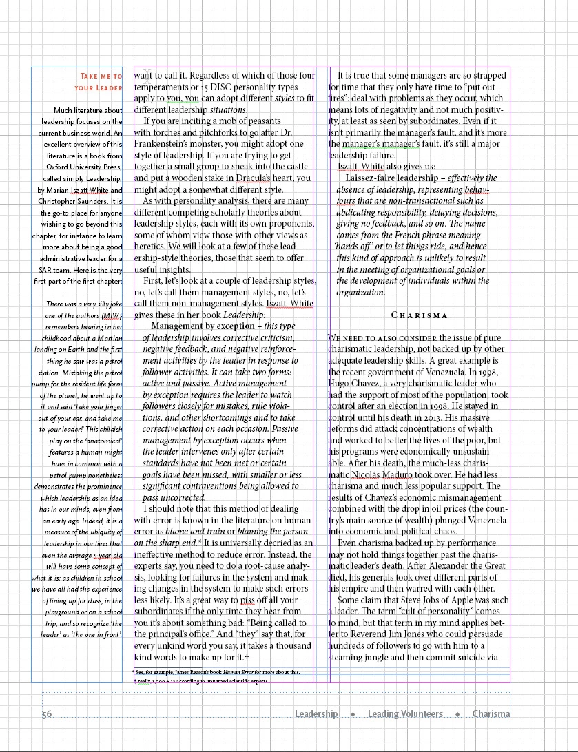 So, here are two pages with two different ways to manage chapter title and section and subsection headers using InDesign. Please help me choose between them.